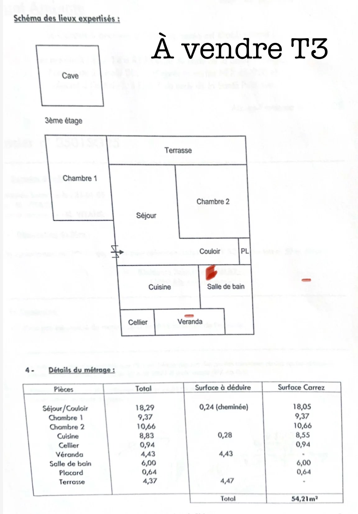 Surface : 63.63 m² (54.21 en loi Carrez)