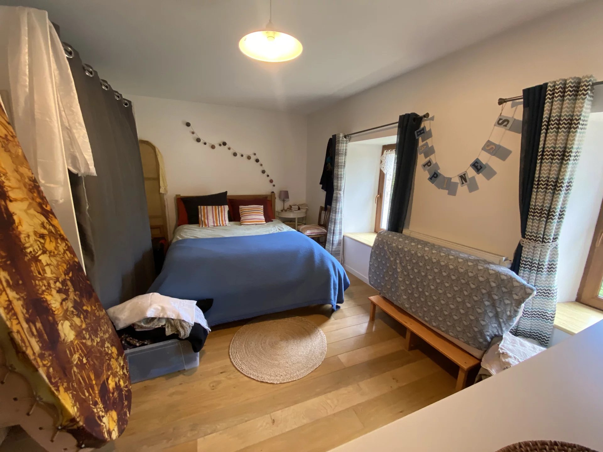 Concernant la bâtisse, ancienne ferme en pierres rénovée en 2015, environ 130 m2 habitables sur deux niveaux :