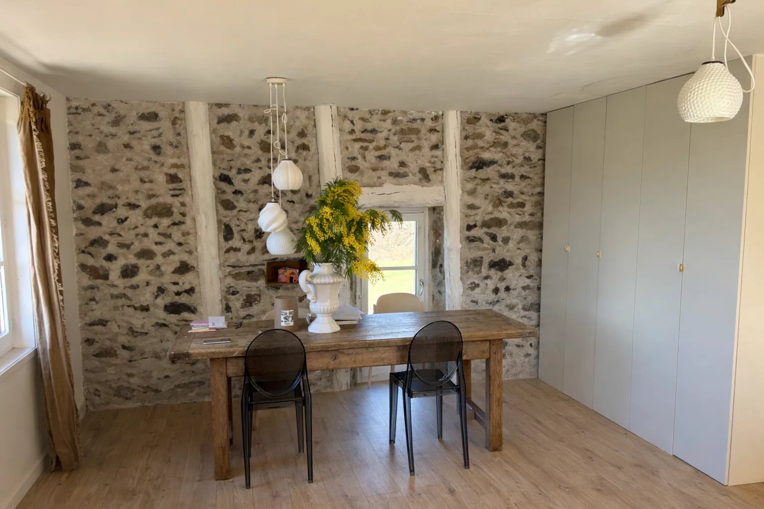 Les toitures en lauze, les combles perdus isolés et le raccordement au tout-à-l’égout assurent un équilibre entre authenticité et confort.