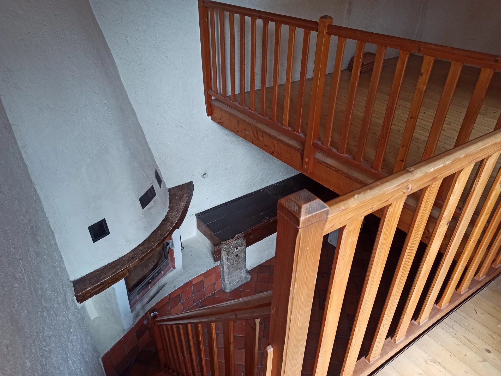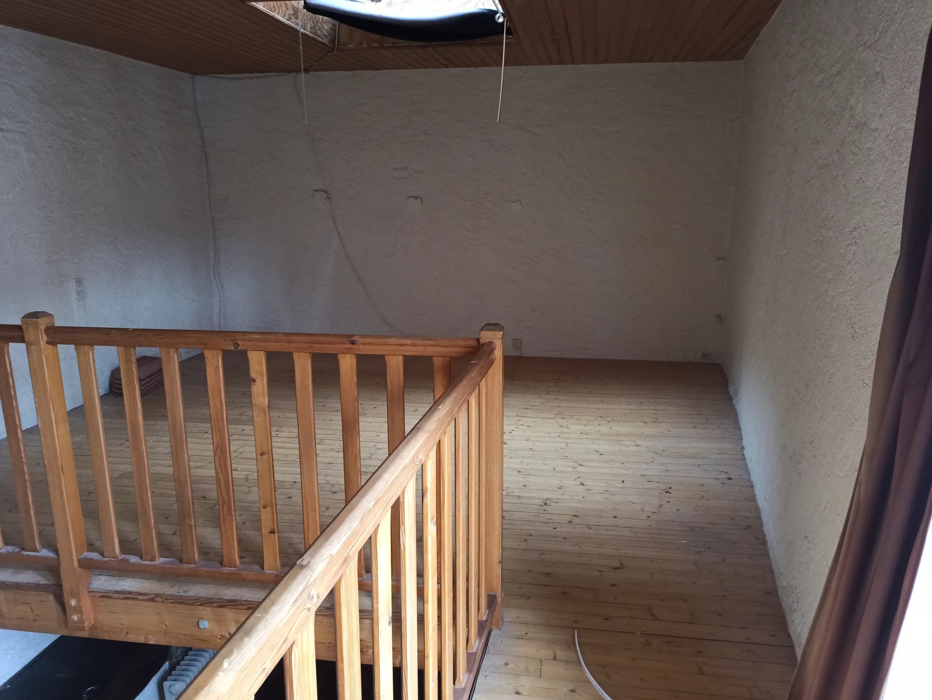 Au premier étage : une grande mezzanine avec Velux ; une chambre avec cheminée. Au-dessus, un grenier aménageable.