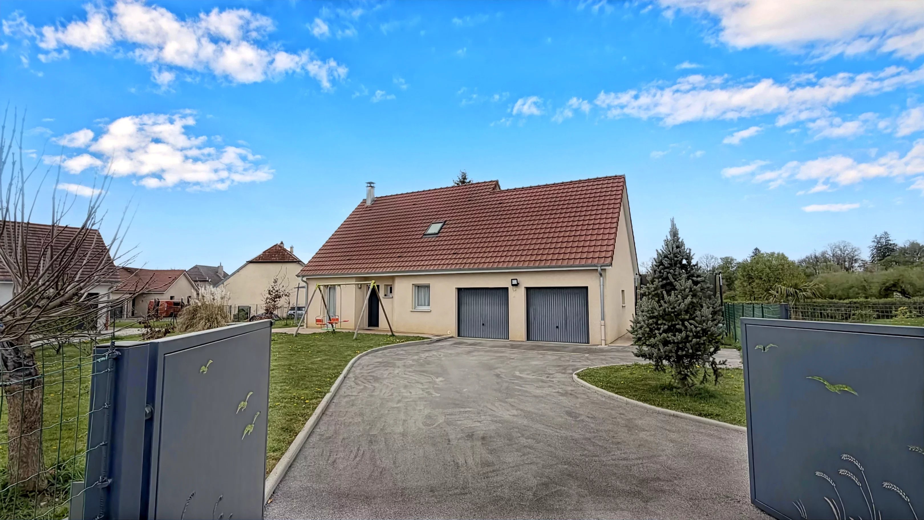 Située dans un environnement calme, cette maison récente de 108 m² habitables, complétée par un garage de 45 m², allie modernité et fonctionnalité.