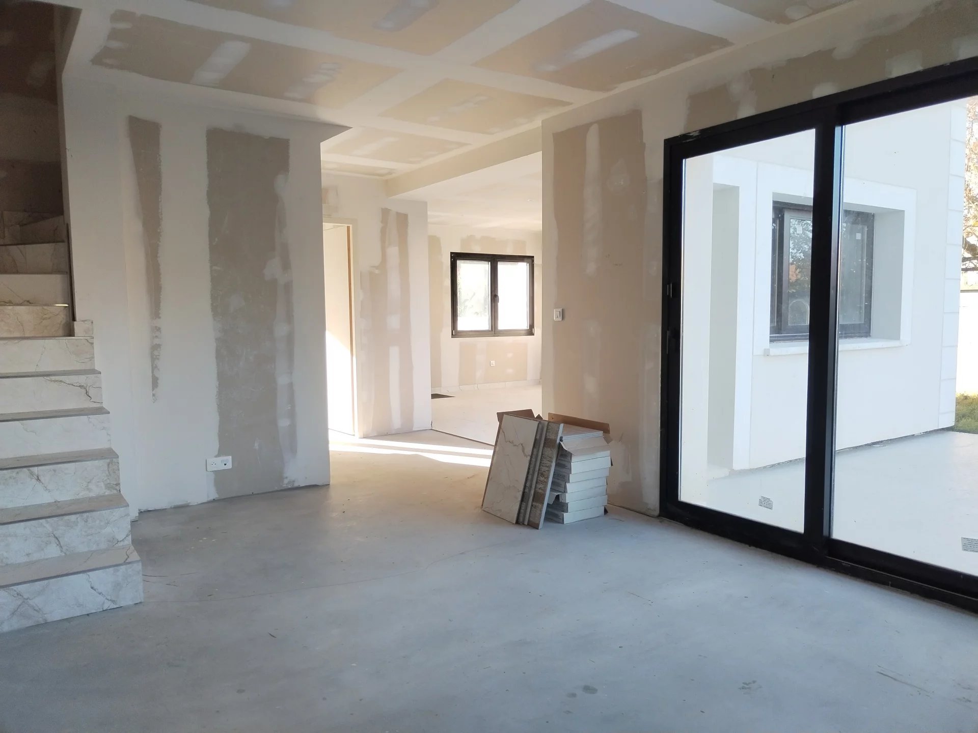 Maison viabilisée construite avec des matériaux (dernières normes) de haute performance en isolation.