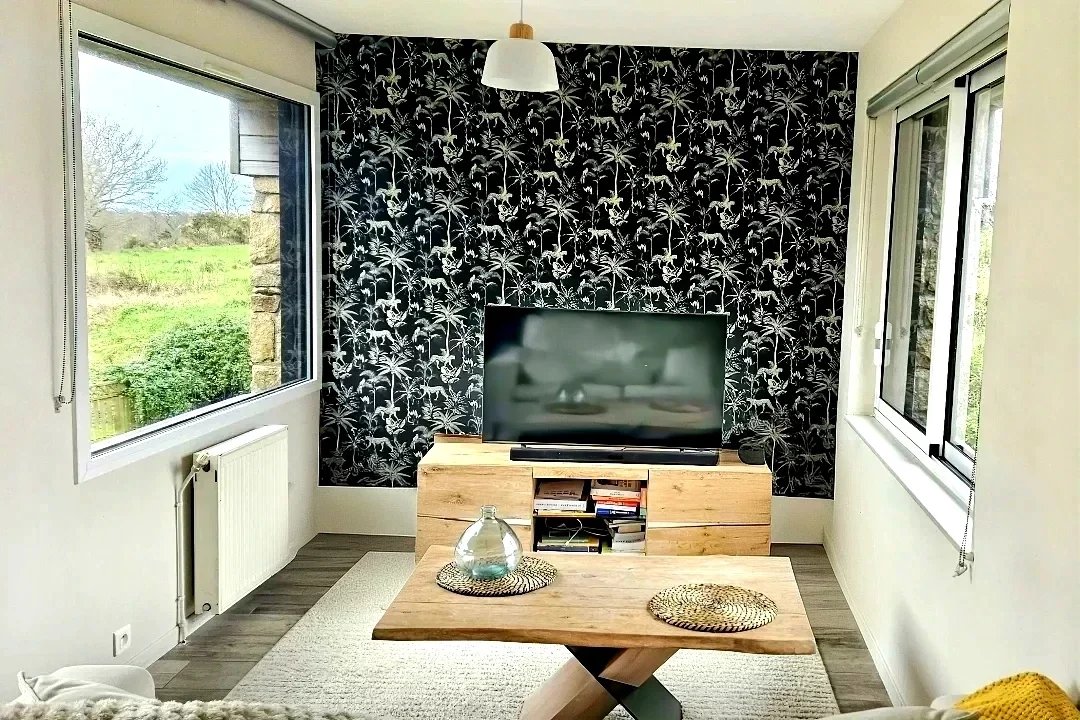 Dans un cadre verdoyant et bucolique, à 5 minutes de Lannion, venez rapidement découvrir cette enchanteresse maison en pierre sur 2 niveaux et son extension en bois, composée :