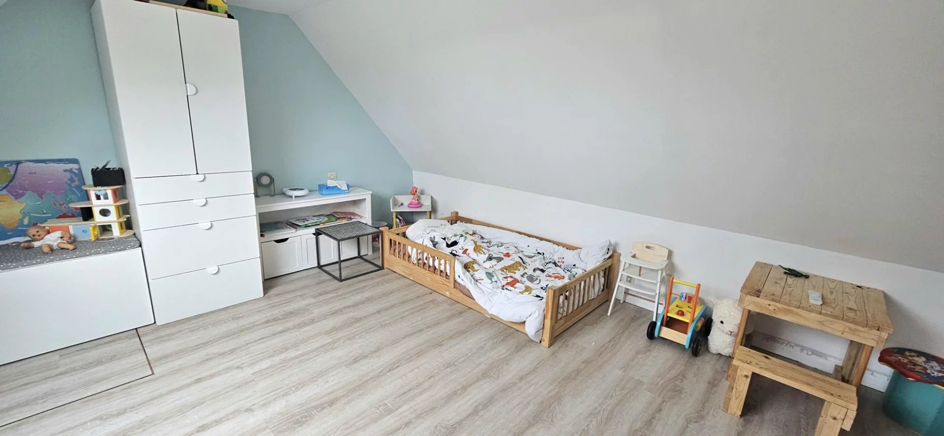 - à l'étage : Un palier avec rangements, 2 chambres, un WC.