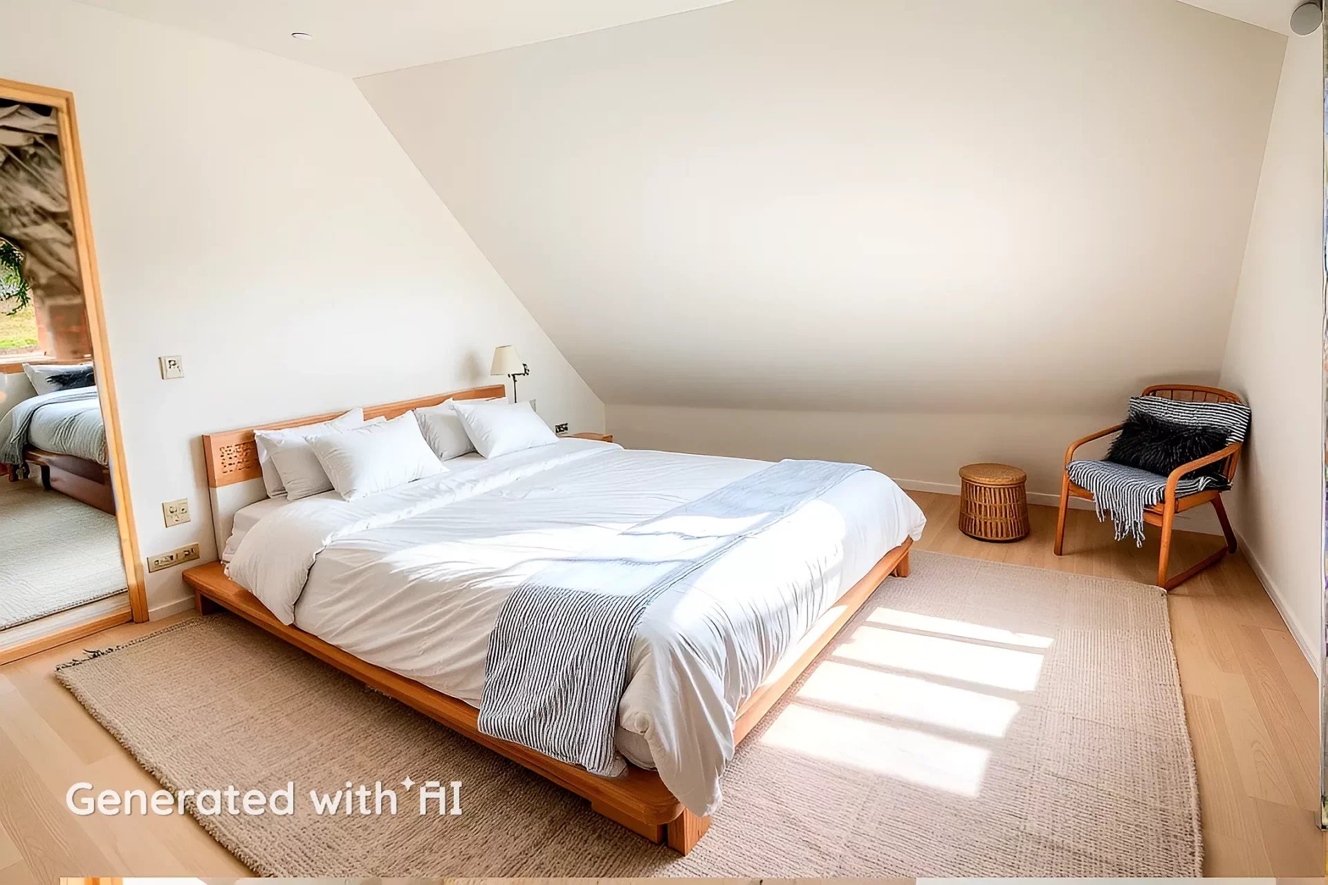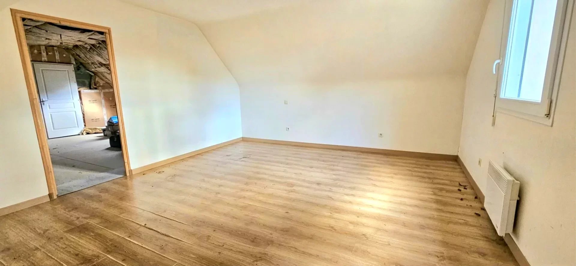 À l'étage : mezzanine, chambre avec placards, salle de bains, chambre et grenier attenant (dressing aménageable).