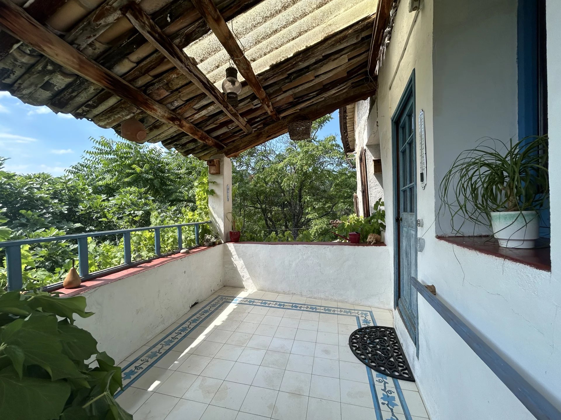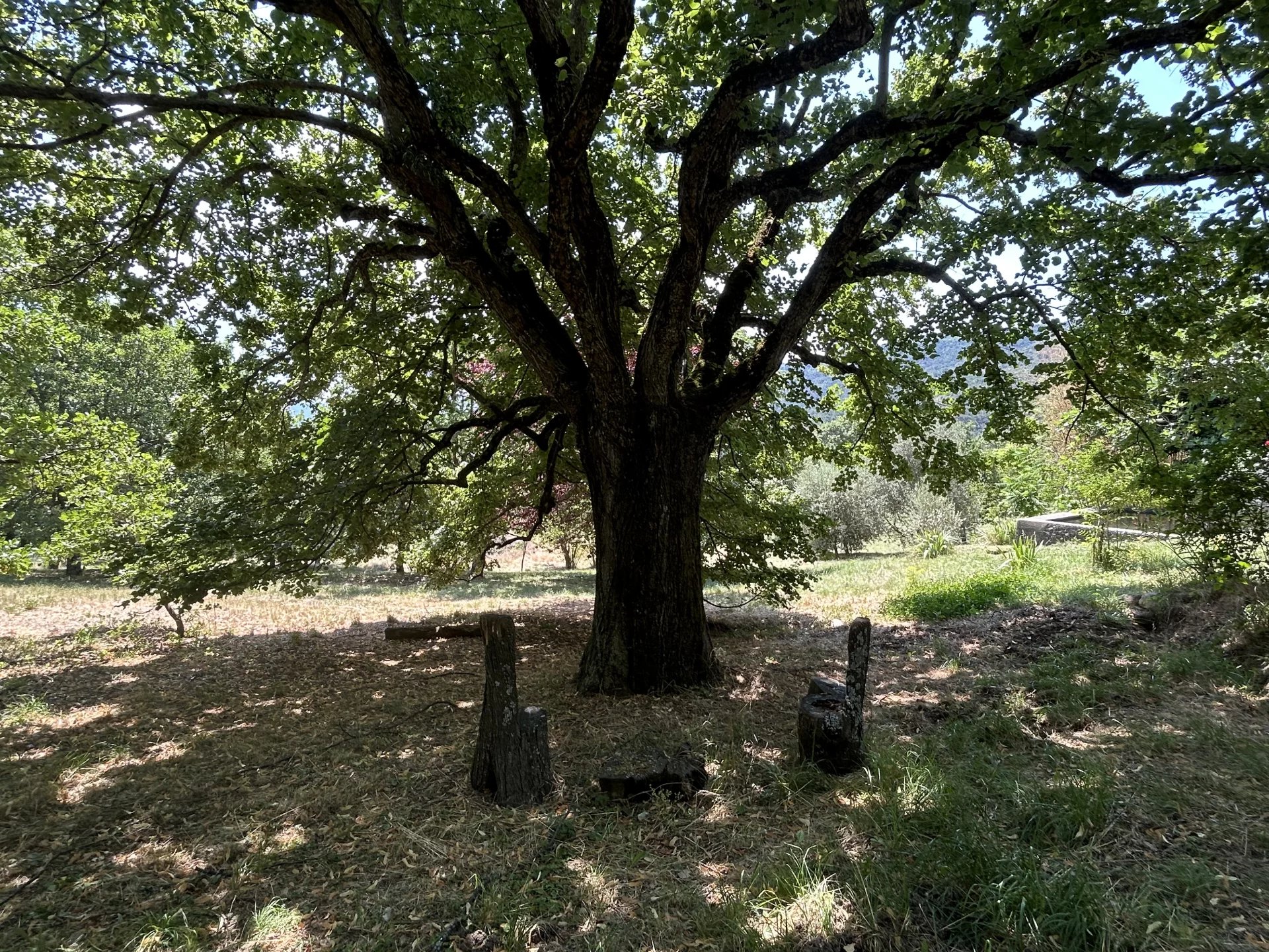 Baignée de soleil grâce à son exposition plein sud, la propriété s’étend sur plus d’un hectare de terrain arboré, avec des essences fruitières (quatre oliviers, pommiers, poiriers, cerisiers) ainsi qu'une source naturelle qui alimente une fontaine et un joli bassin devant la maison.