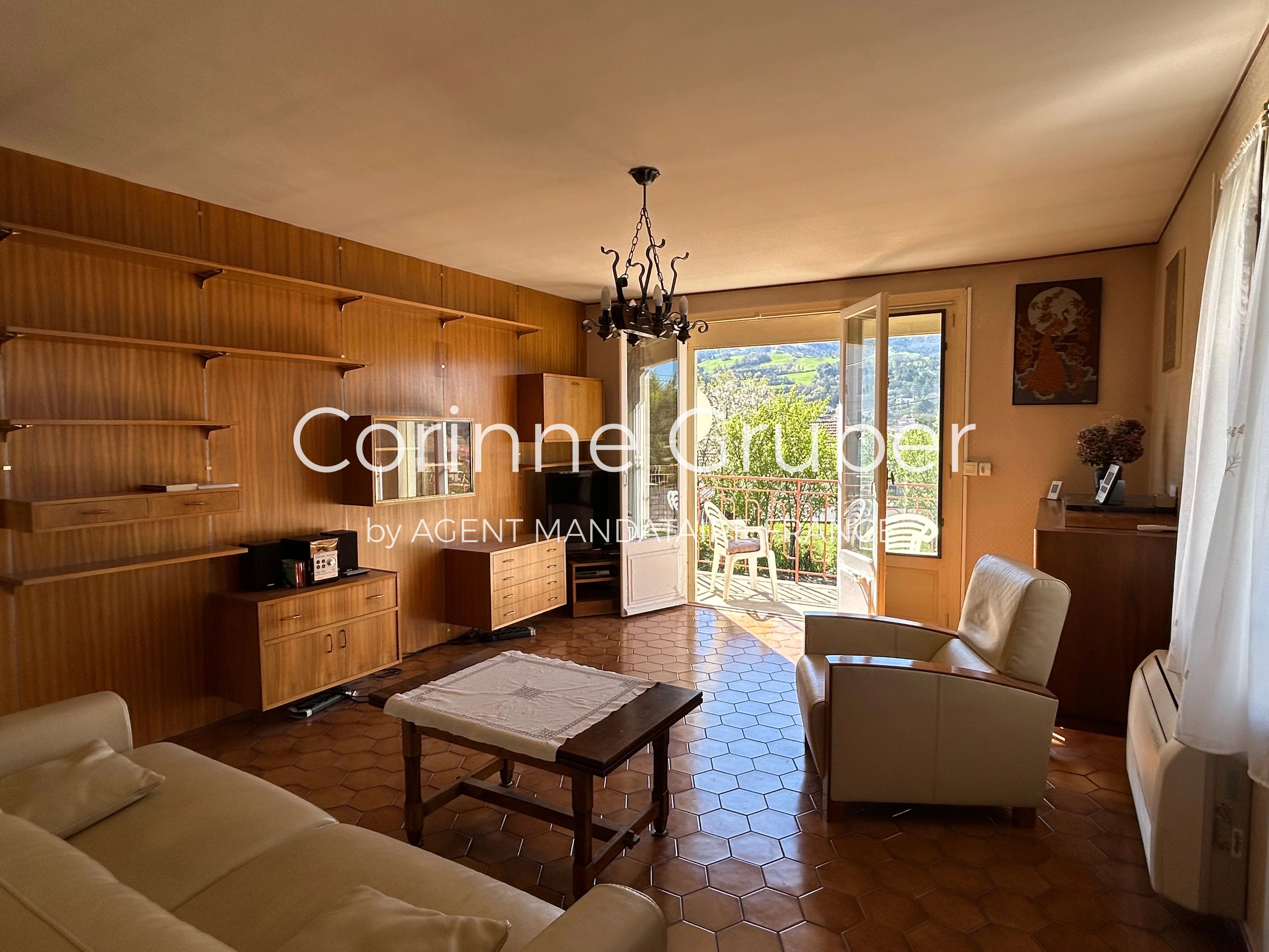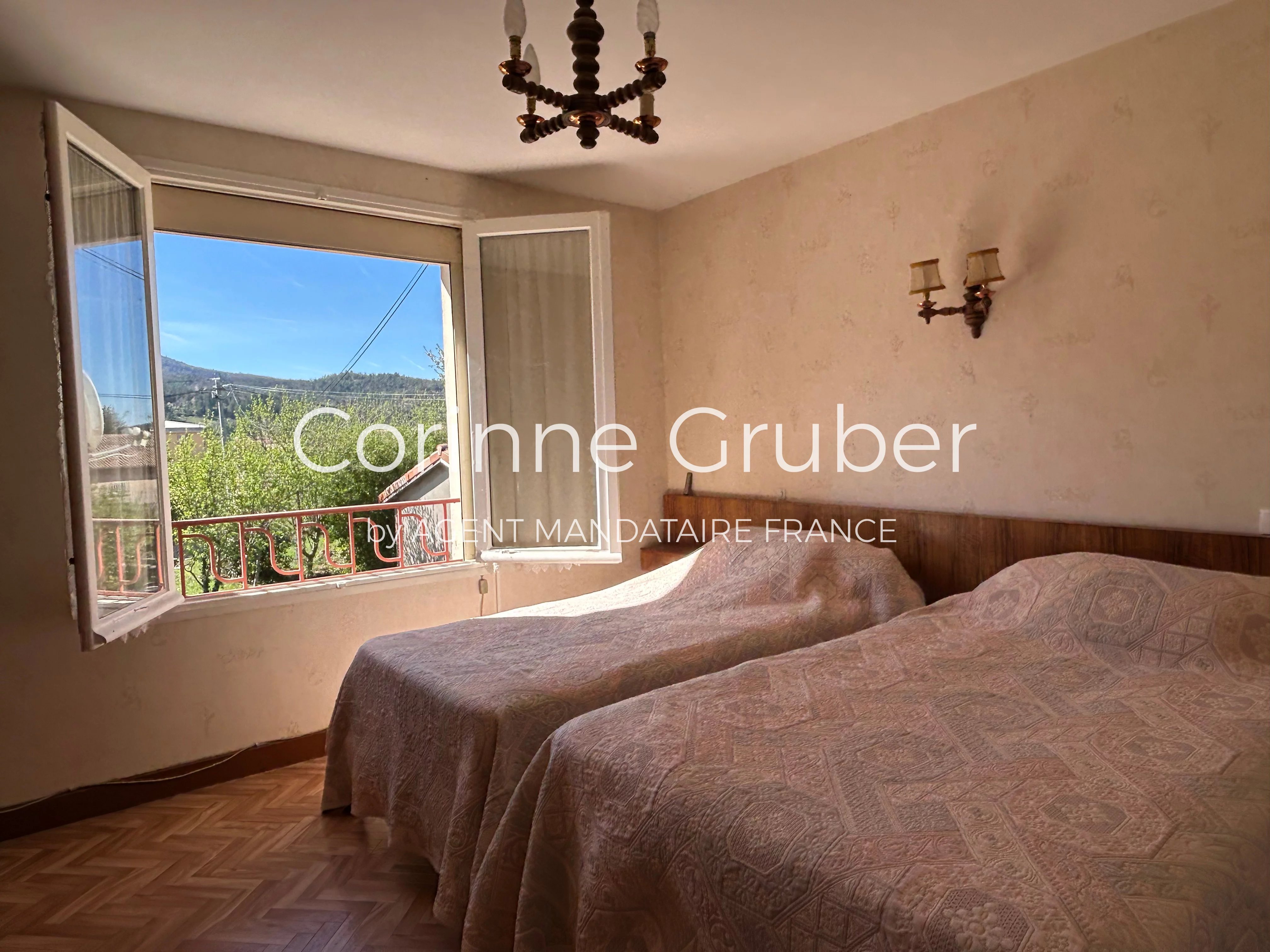 Digne-les-Bains, maison des années 60 pleine de charme, offrant une vue dégagée exceptionnelle sur le Cousson et un ensoleillement optimal, implantée sur un terrain arboré et planté d’arbres fruitiers de 633 m² avec canal d’arrosage.