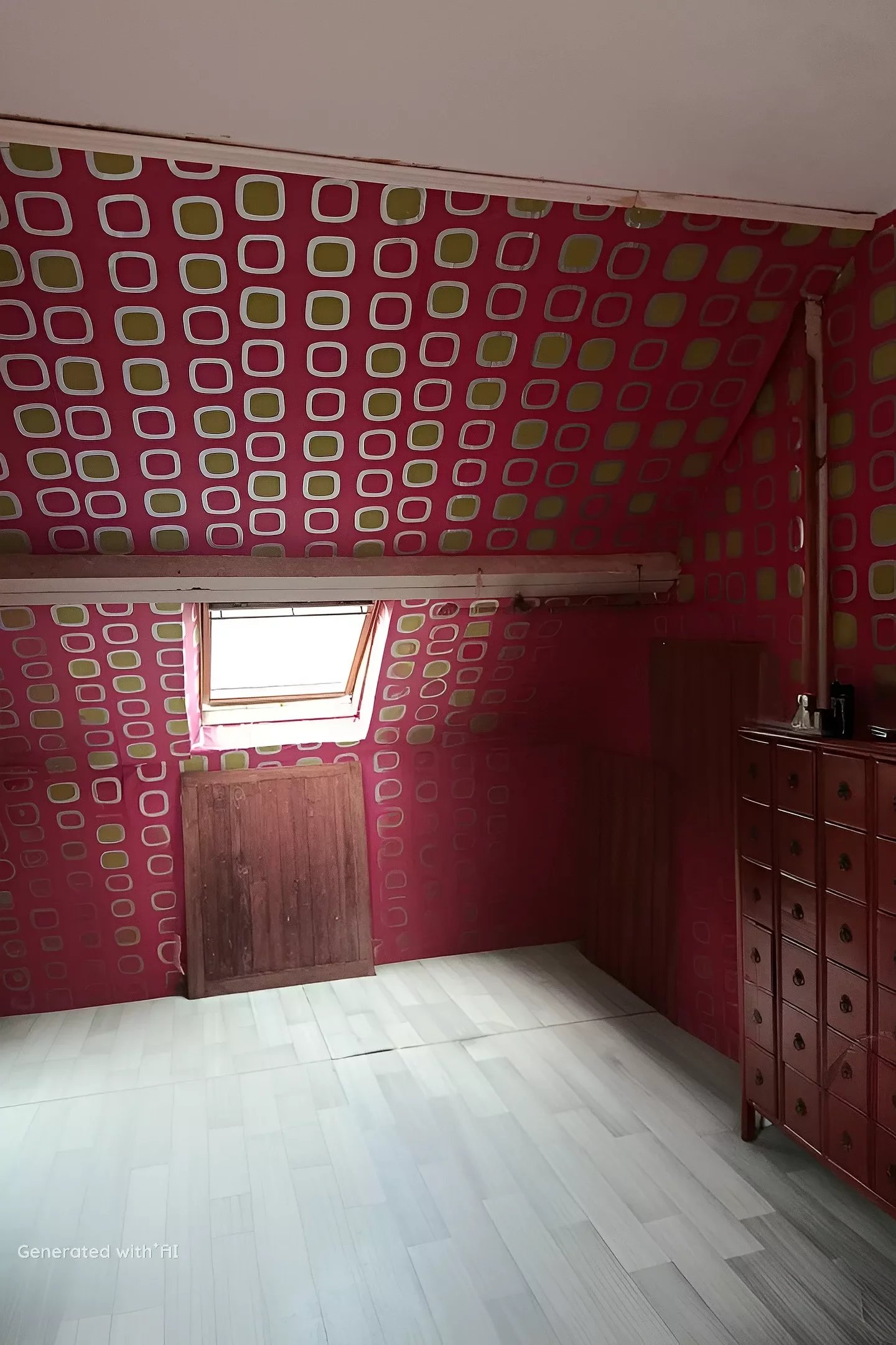 À l’étage, la maison propose une salle d’eau avec WC et deux chambres sous combles, offrant un espace nuit fonctionnel et chaleureux.