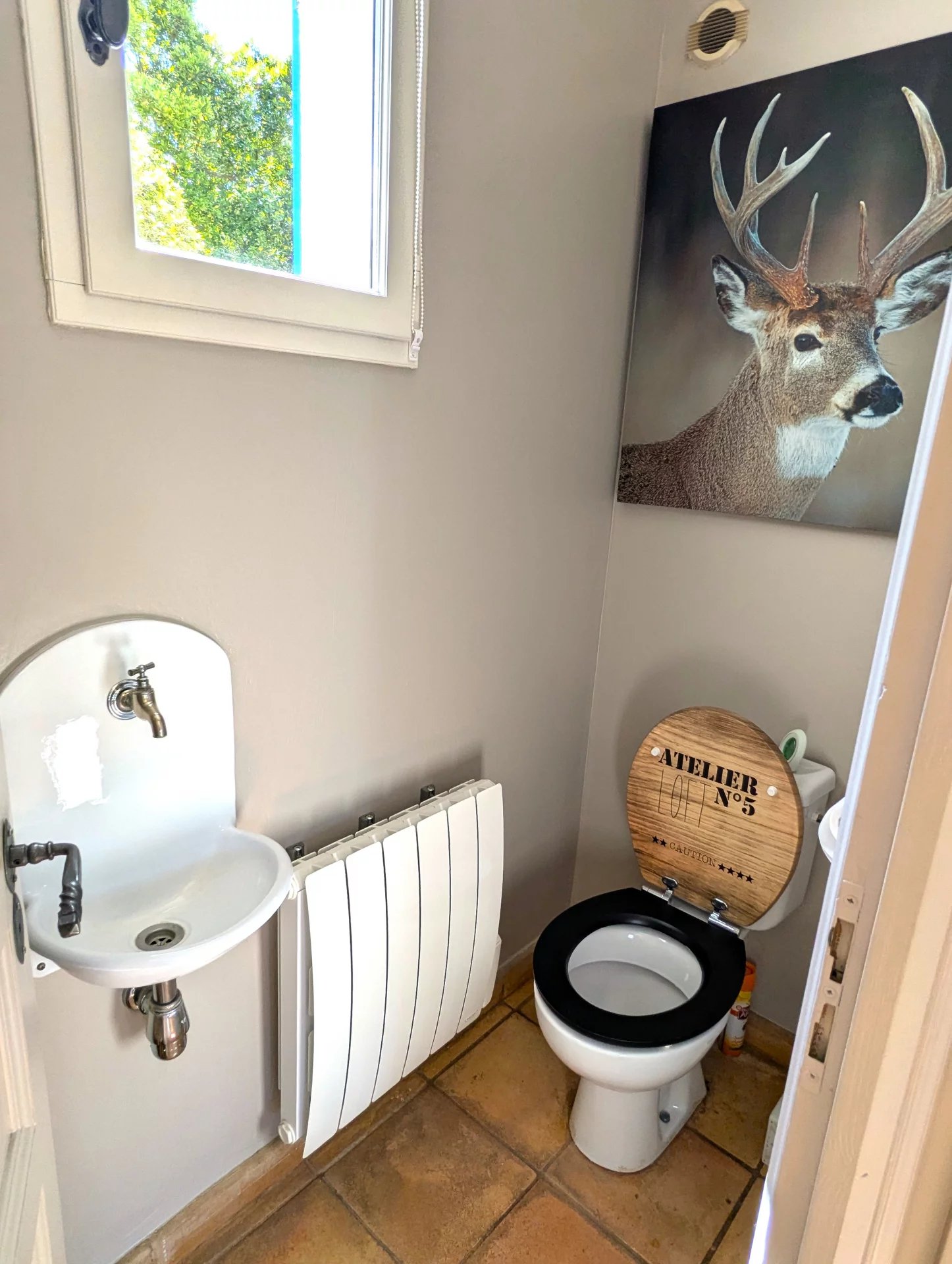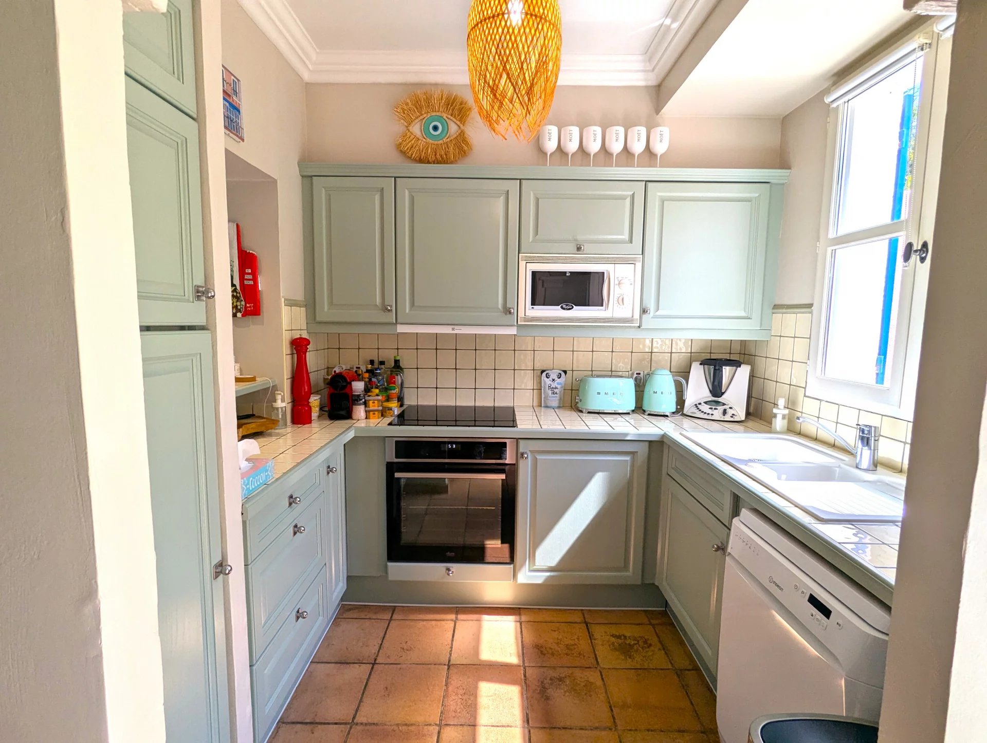 Au rez-de-chaussée, séjour-salon donnant sur le jardin arboré avec terrasse et jardin, cuisine entièrement équipée ouverte sur le séjour, un WC visiteur.