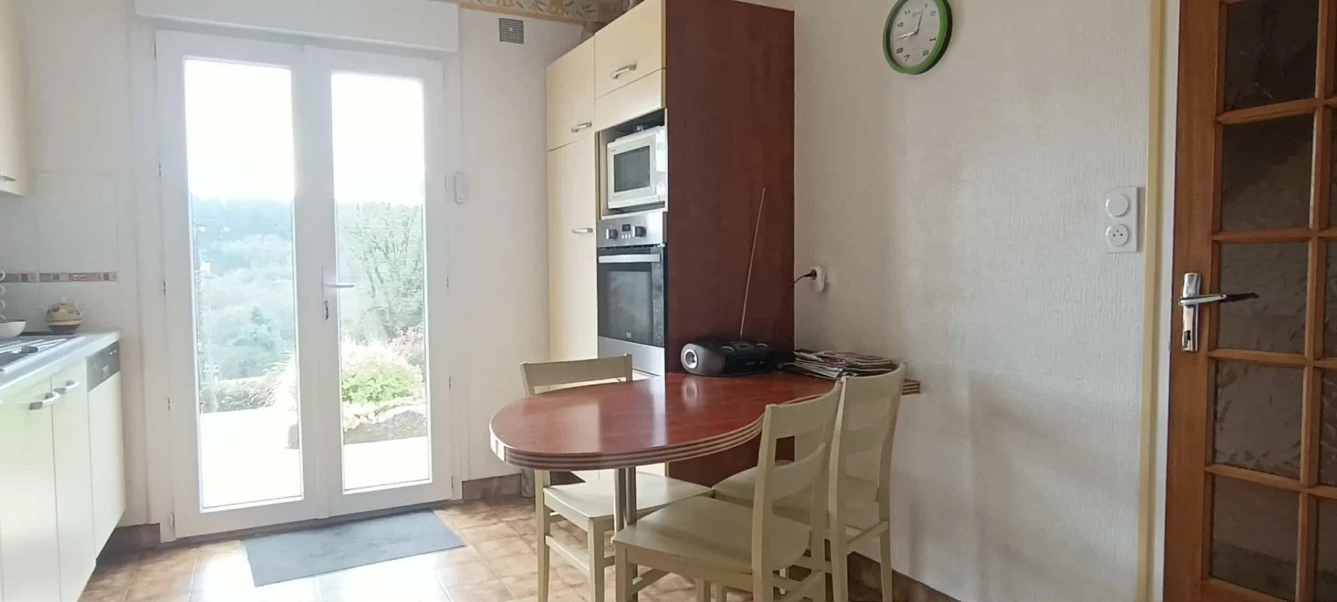 Cette maison en bon état général, habitable de suite, comprend : une cuisine aménagée, équipée et dinatoire de 10 m² donnant sur la terrasse exposée sud-ouest. La vue dégagée sur les vallons donne immédiatement le ton : tranquillité, lumière et cadre naturel préservé ; une pièce de vie lumineuse de 35 m², 2 chambres au RDC, salle d'eau rénovée avec douche italienne, WC ; à l’étage : 2 grandes chambres de 14 et 15 m², une chambre d’enfant, une salle d’eau avec WC. Le tout sur un sous-sol total de 90 m² avec garage, buanderie, cave...