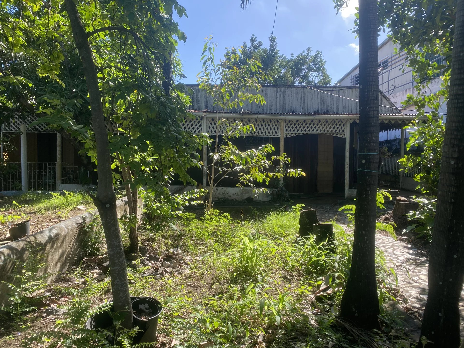 Maison à démolir sur le terrain.
