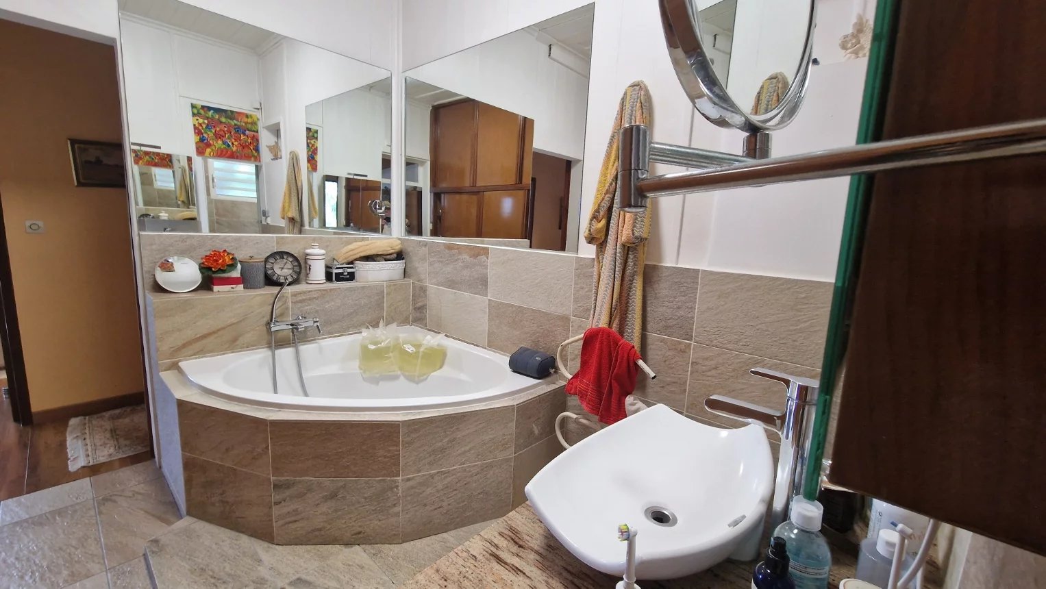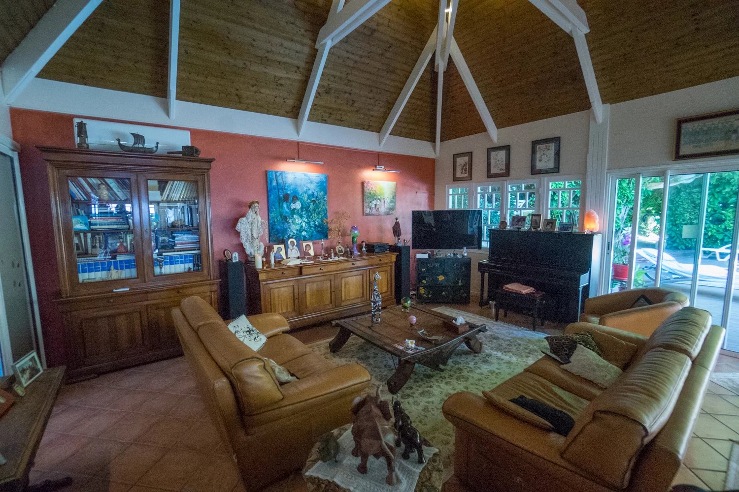 Elle se compose, pour vous accueillir, un immense deck avec piscine chauffée et un jacuzzi, grande terrasse abritée pour recevoir vos amis, pièce de réception, salon salle à manger, bureau, cuisine neuve moderne entièrement équipée, arrière-cuisine, suite parentale avec sa terrasse vue mer dégagée, 2 chambres avec placards, deux salles de bains, dressing, WC, buanderie, nombreux rangements, parkings pour plusieurs voitures. En annexe, sur une parcelle indépendante un bungalow bois 2 pièces indépendant générant des loyers (900 € mensuels), portail automatique caméras de surveillance, alarmes, nombreuses terrasses, coin BBQ. Pas de travaux à prévoir, vous n’avez qu’à poser vos valises, prête à vivre, prestation très haut de gamme, menuiserie boiserie créole, jardin créole, chauffe-eau solaire, climatisation, alarme, etc.