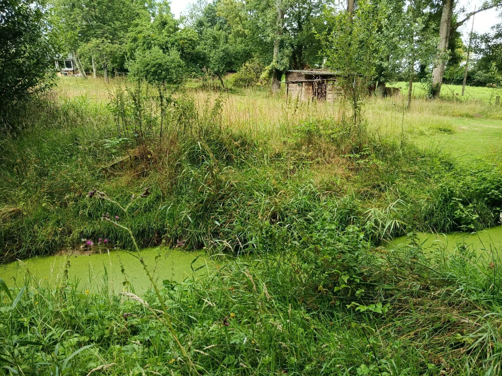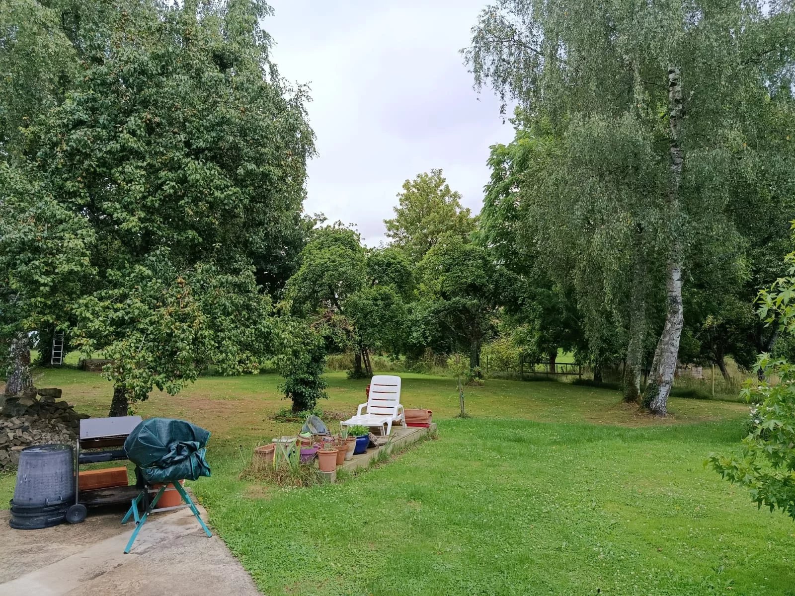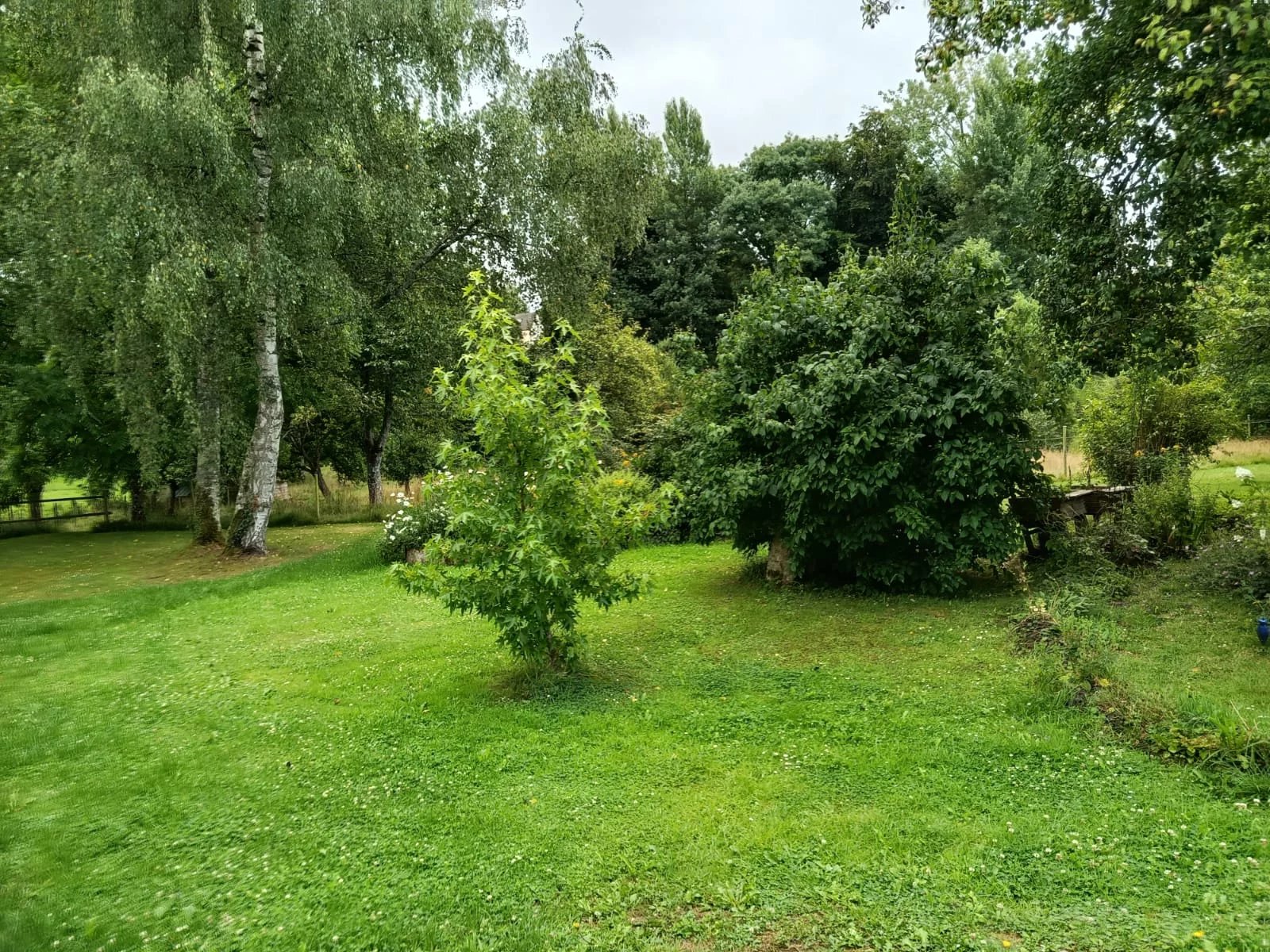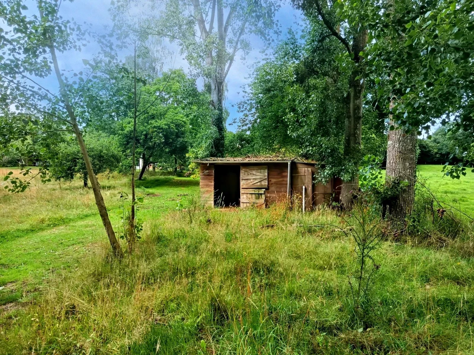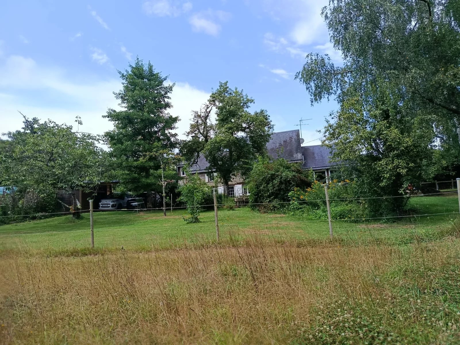 L’ensemble s’étend sur un terrain de 10 174 m², comprenant une mare traversée par un ruisseau, un verger varié (pommiers, poiriers, pruniers, pêchers) ainsi que de vastes espaces pour les amoureux de la nature. Environ 6 000 m² du terrain sont clôturés par une clôture électrifiée, permettant d’accueillir des animaux. Un box pour équidé est également présent.
