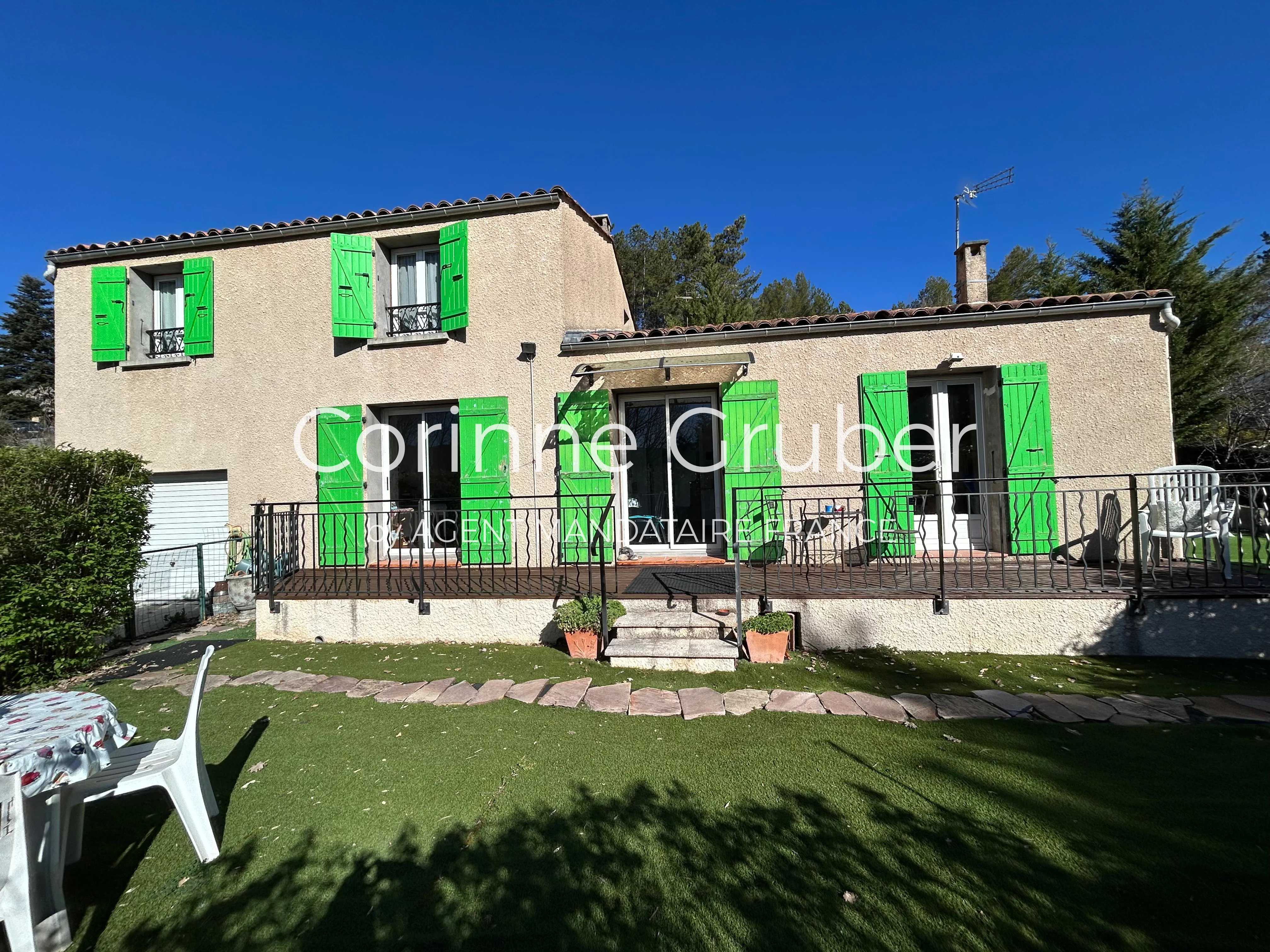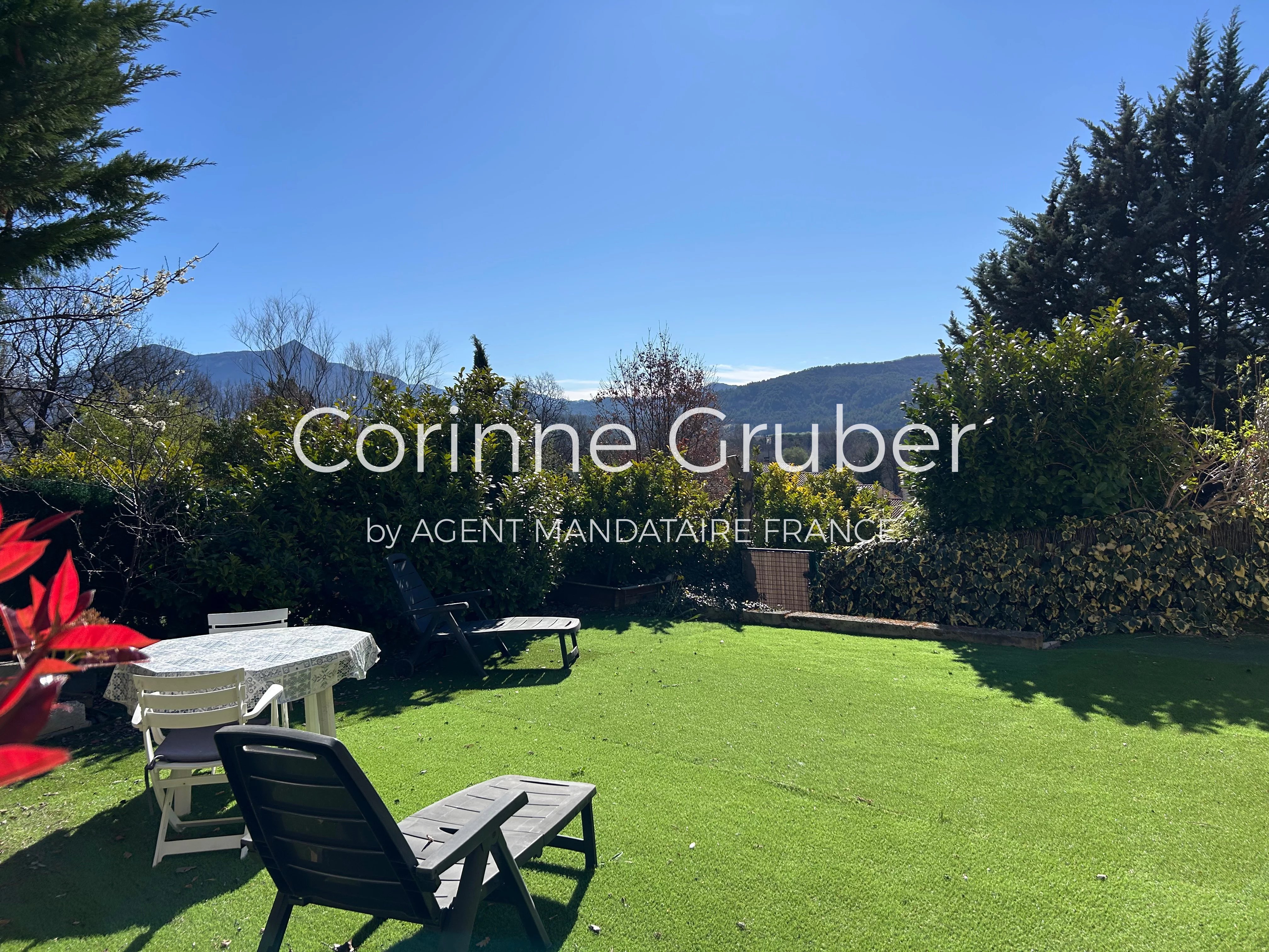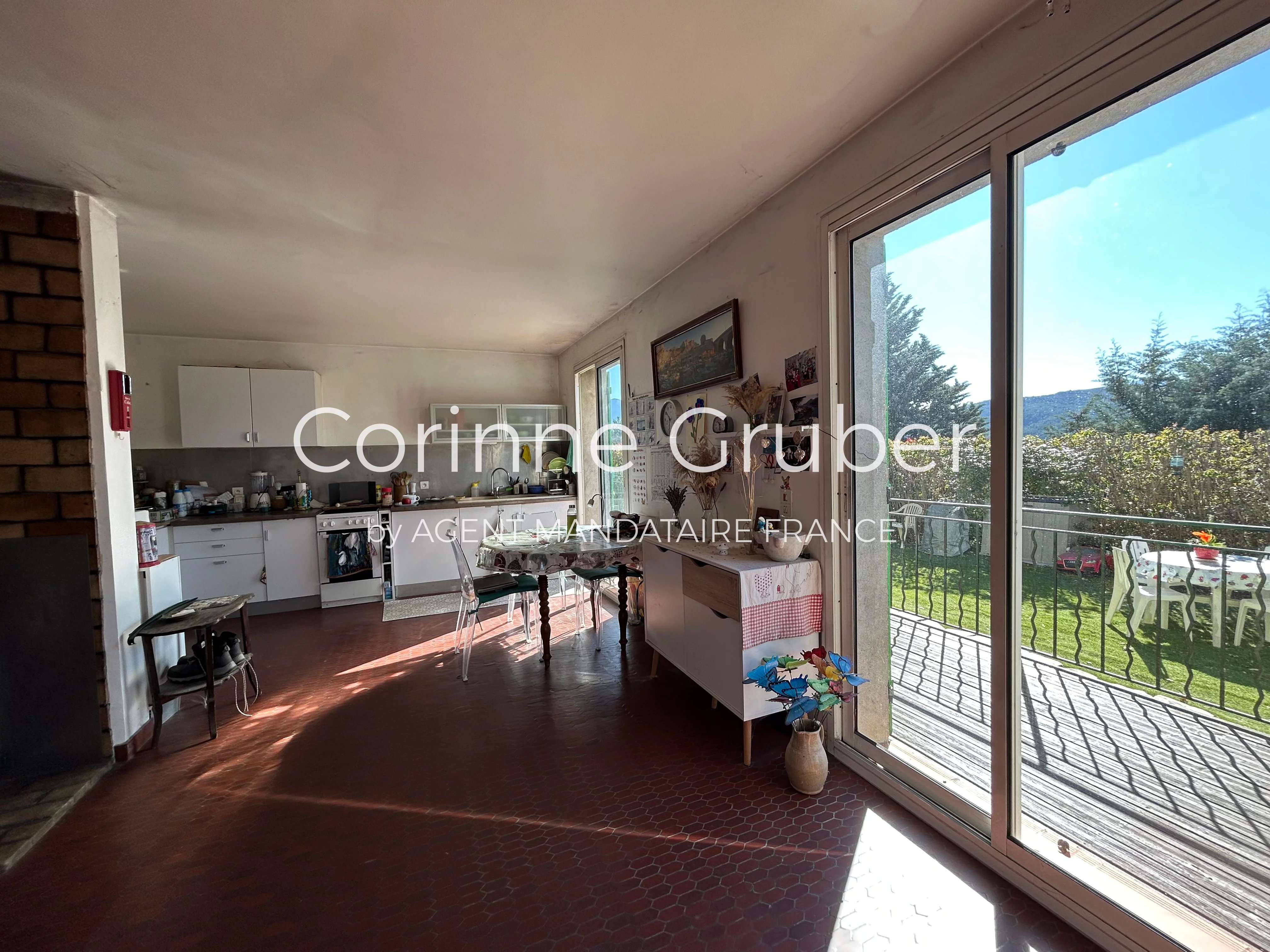 À quelques minutes de Digne-les-Bains, dans un environnement calme, avec une magnifique vue dégagée et une belle exposition plein sud, maison lumineuse des années 90 de type 4/5, offrant 118 m² habitables, avec garage et dépendances, sur un terrain de 1 115 m².