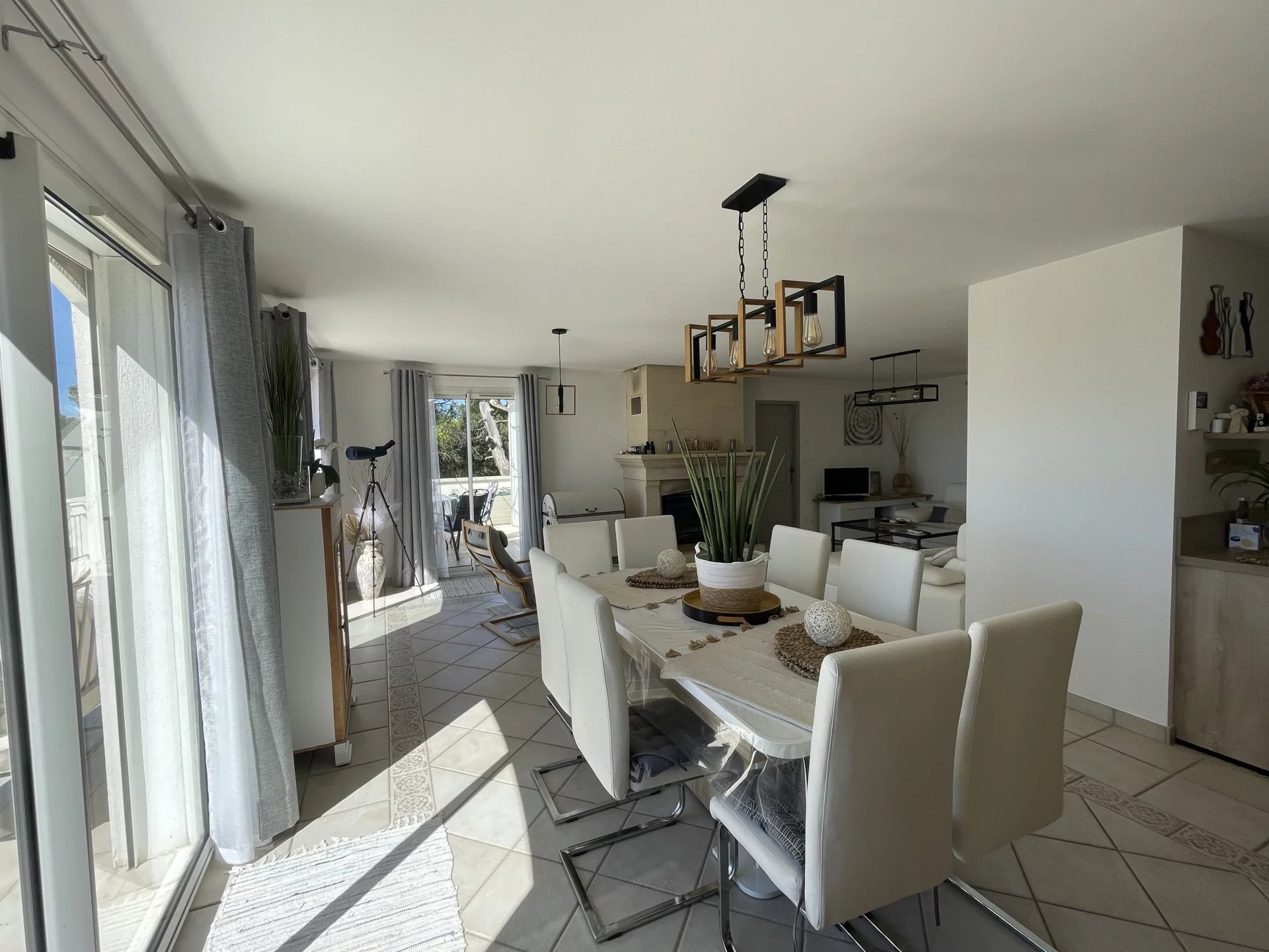 L'intérieur se compose d'un grand espace de vie lumineux et convivial comprenant : salon séjour et cuisine aménagée donnant sur plusieurs terrasses.