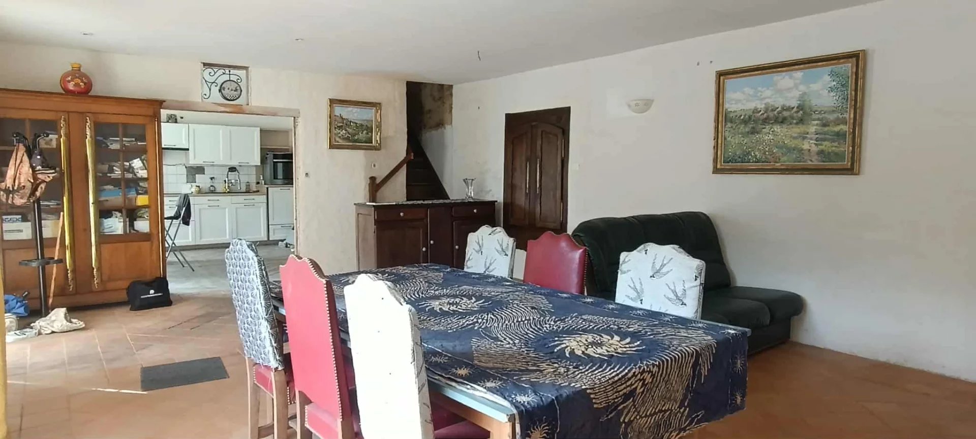 La maison est habitable, (isolée au chaux-chanvre) mais nécessite quelques travaux d'amélioration (électricité, assainissement et remise au goût du jour...) actuellement sans chauffage, il est possible de mettre un poêle à bois dans le séjour, ou une pompe à chaleur à raccorder au plancher chauffant déjà installé au rez-de-chaussée.