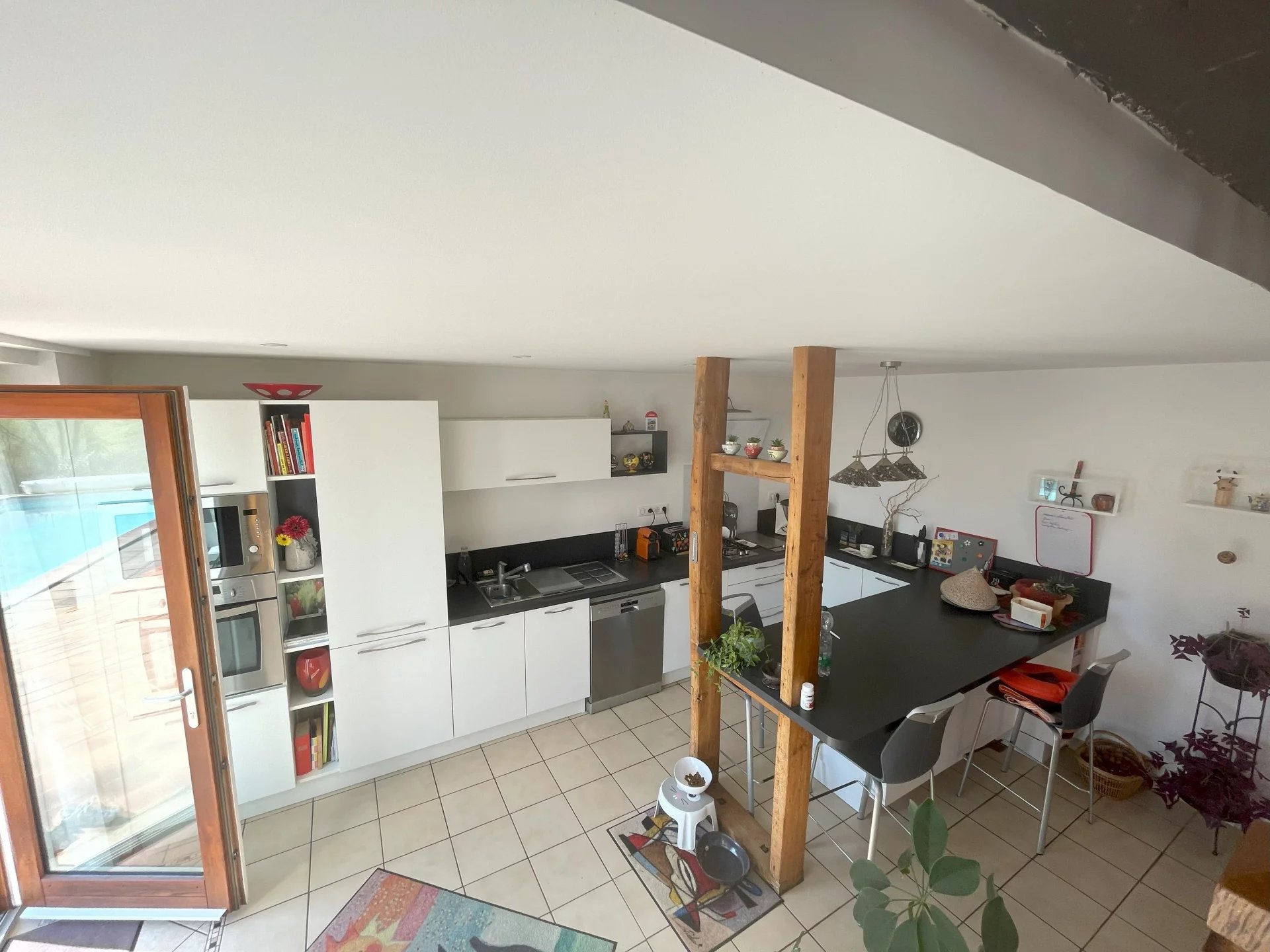 Une belle entrée, 4 chambres, dont 2 avec salle d'eau, pièce de vie avec belle cuisine américaine récente, accès direct sur terrasse et piscine.
