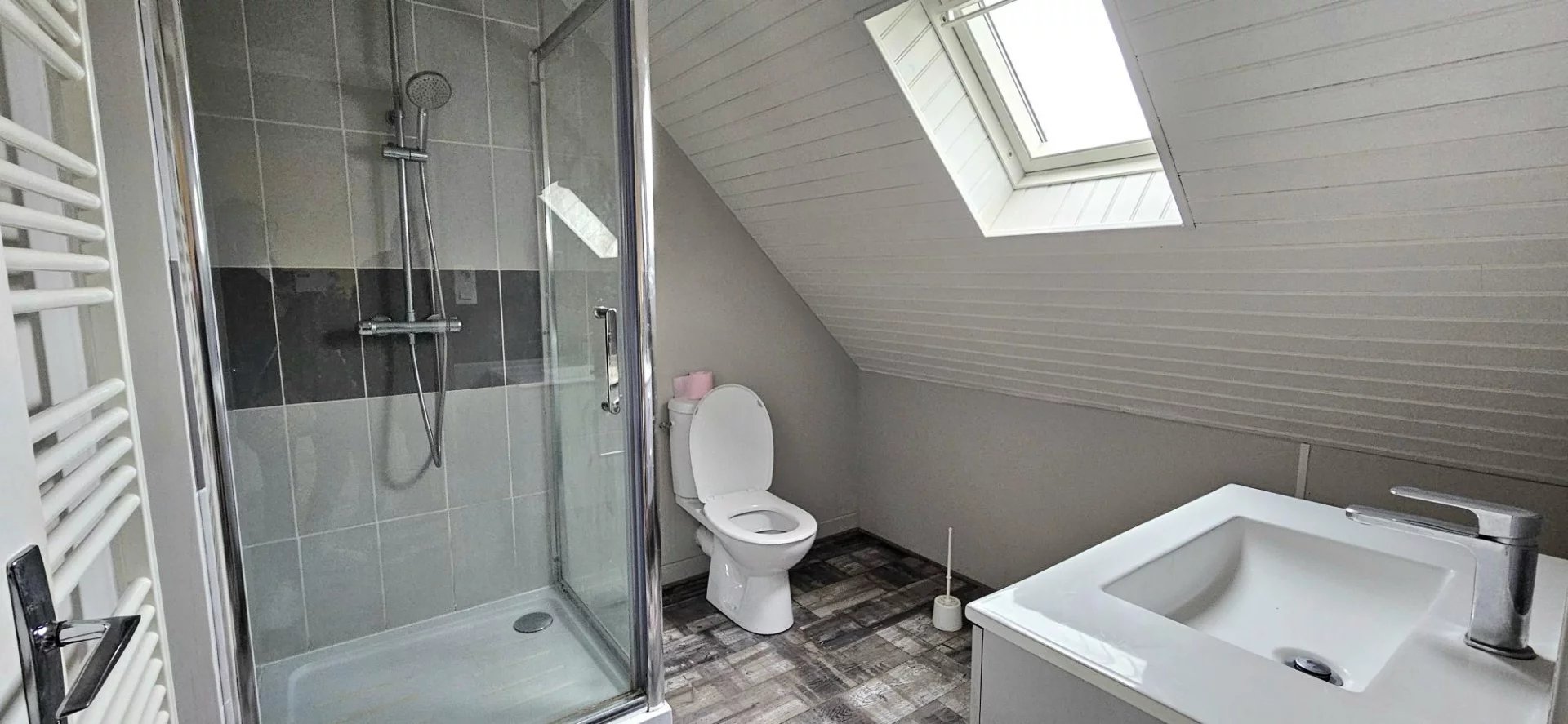 - à l'étage : palier, 2 chambres, salle d'eau avec WC.
