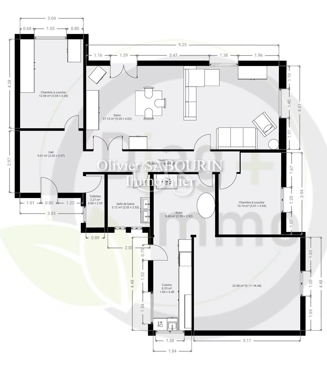 Possibilité de créer une chambre supplémentaire en divisant le séjour de 37 m² ou en aménageant la pièce de 23 m².