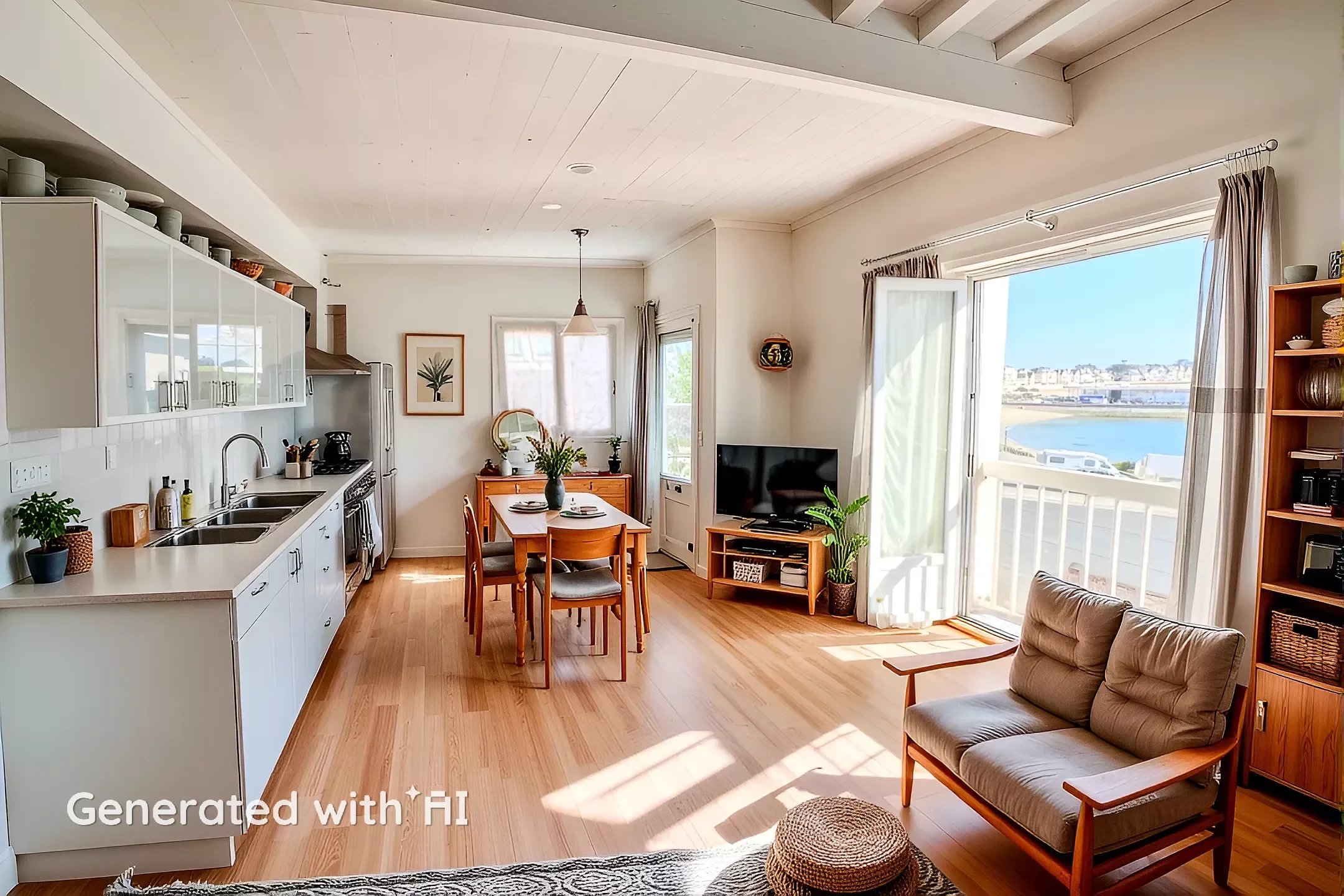 Découvrez cet espace convivial, avec cuisine ouverte, parfait pour recevoir des amis ou passer des soirées en famille.