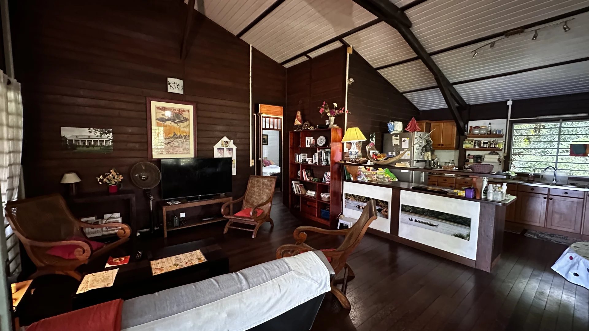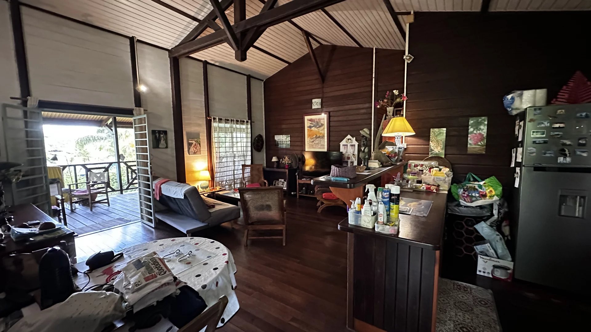 Un vaste séjour avec cuisine ouverte, sublimé par un plafond cathédrale,