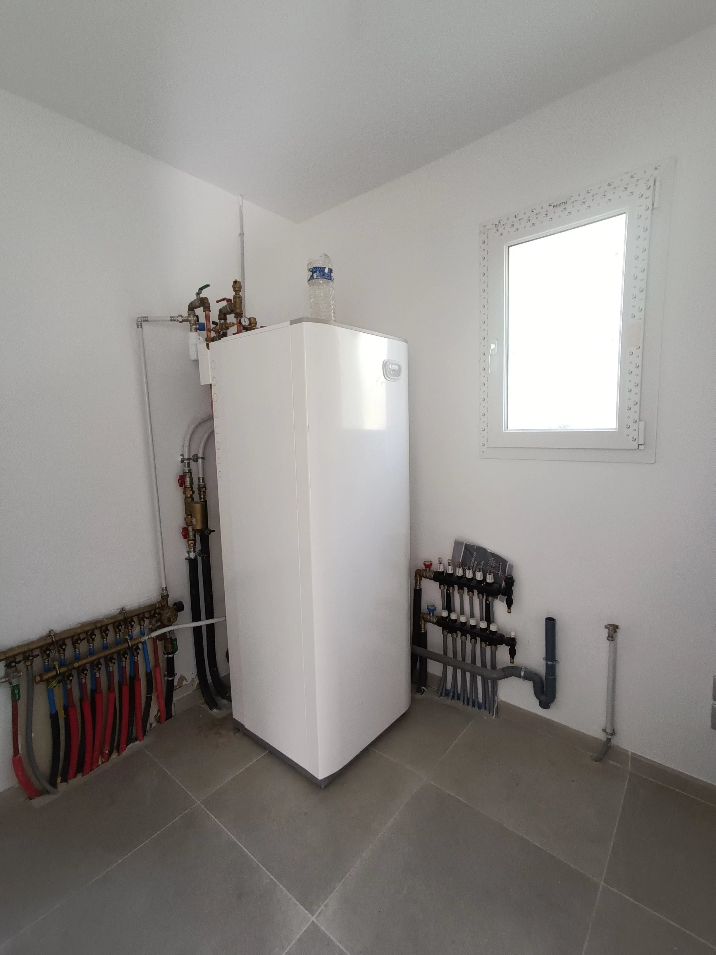 D’une POMPE À CHALEUR air/eau, d’un PLANCHER CHAUFFANT basse température, d’une ventilation mécanique contrôlée, de volets roulants électriques et de double vitrage.