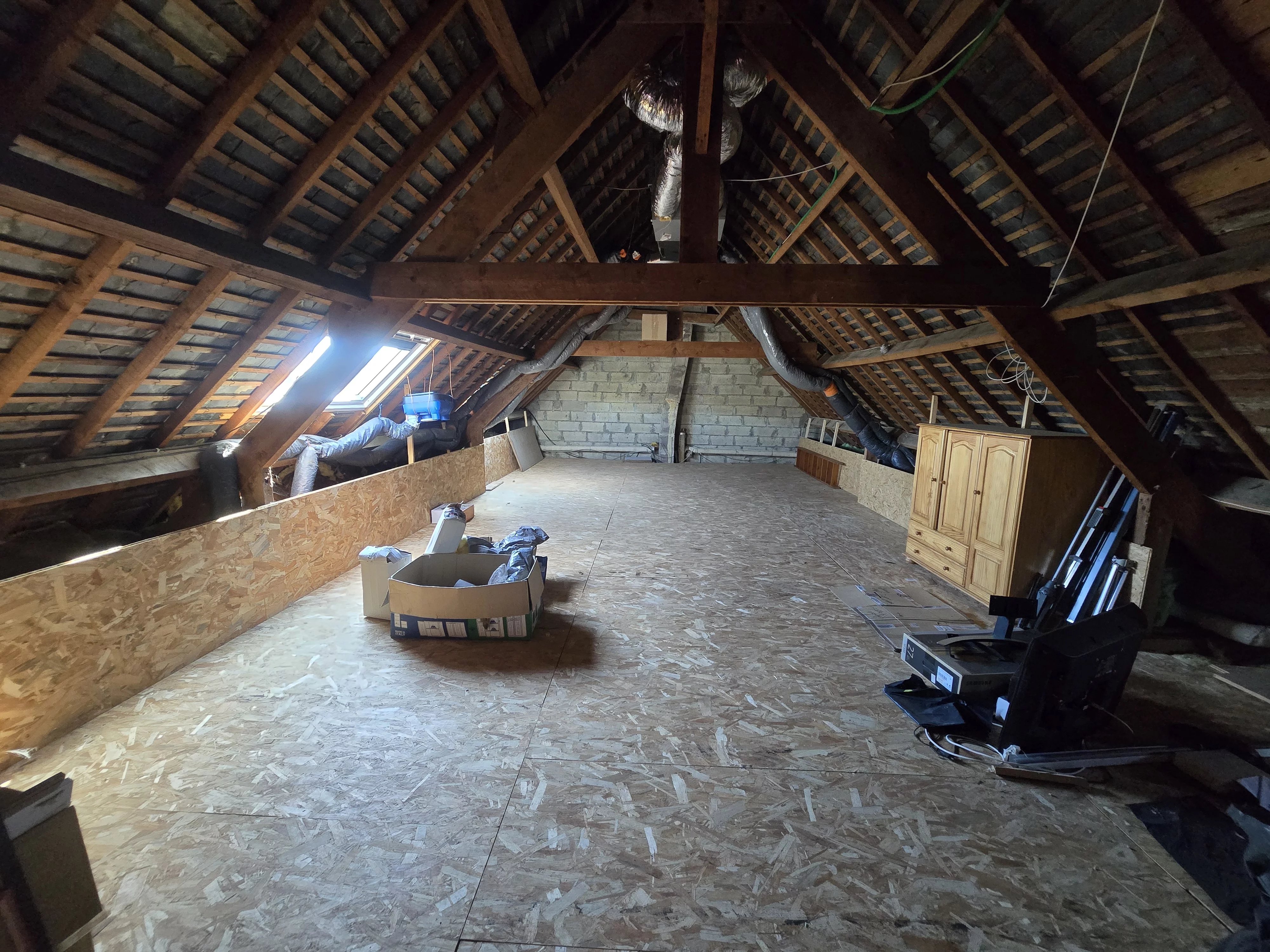 À l’étage, vous trouverez un espace bureau pouvant faire office de chambre, ainsi qu’une surface supplémentaire d’environ 50 m² à aménager selon vos envies : chambres, salle de jeux, bureau…