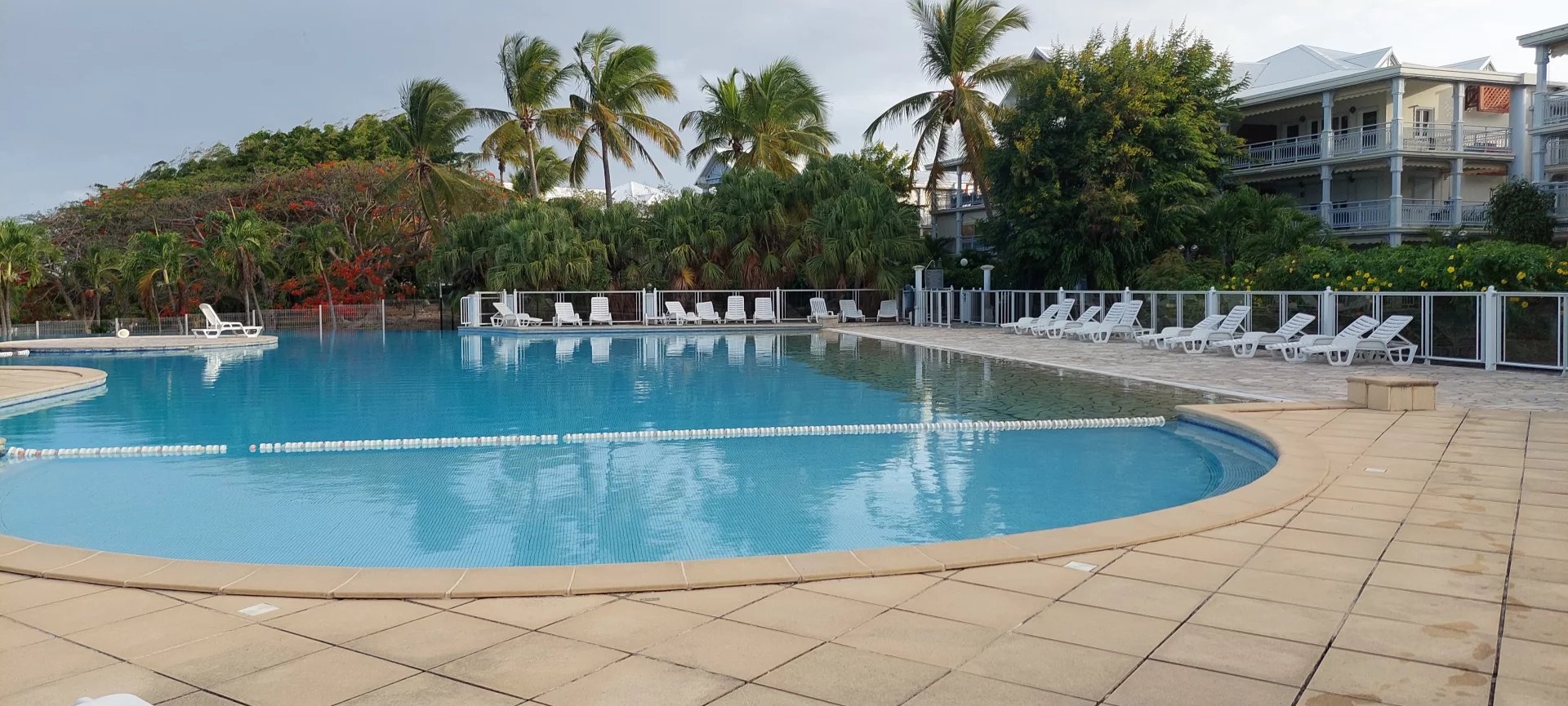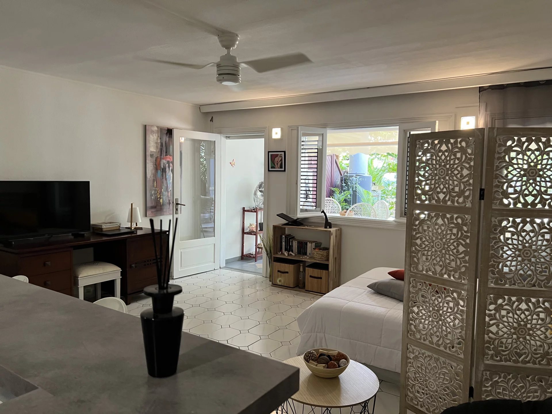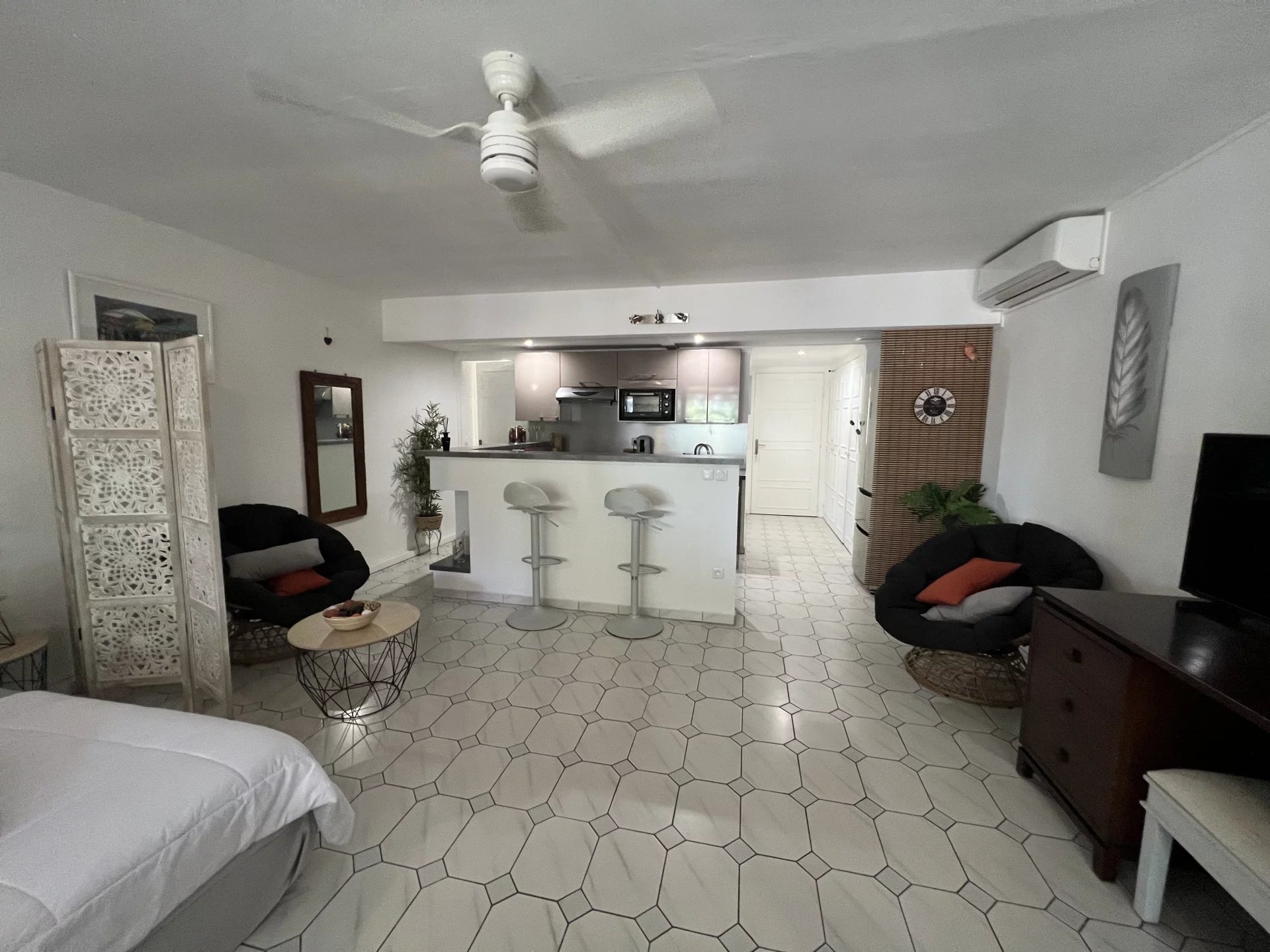 SAINT-FRANÇOIS - STUDIO AVEC JARDIN PRIVATIF. Au rez-de-chaussée d'une résidence de standing, un appartement comprenant une entrée, une pièce principale avec cuisine équipée, une salle d'eau, un WC, une terrasse qui accède à un jardin avec un droit de jouissance exclusif.