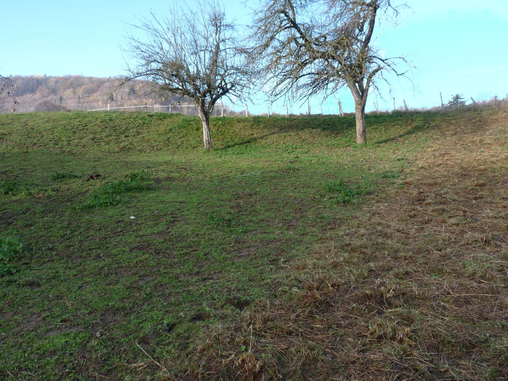 Lot B, 909 m2, 43 m x 21 m environ, du dévers et du plat, viabilités en bordure, vue dégagée et dominante, pas de vis à vis, en bord de champ côté ouest, peu d'habitations à l'est, sans voisinage au sud, lot A voisin au nord.