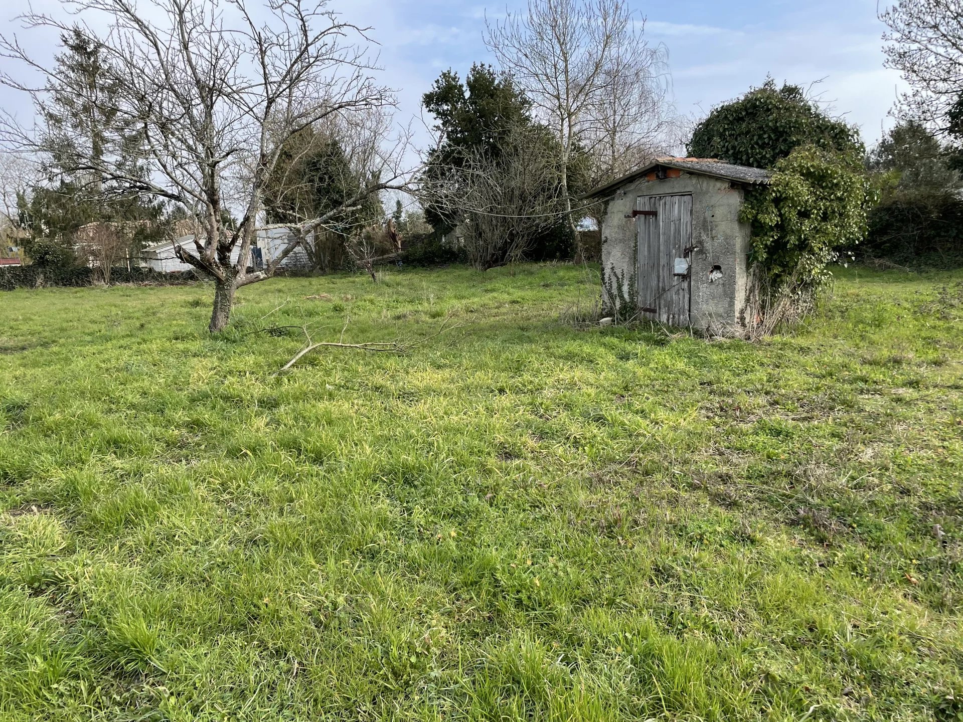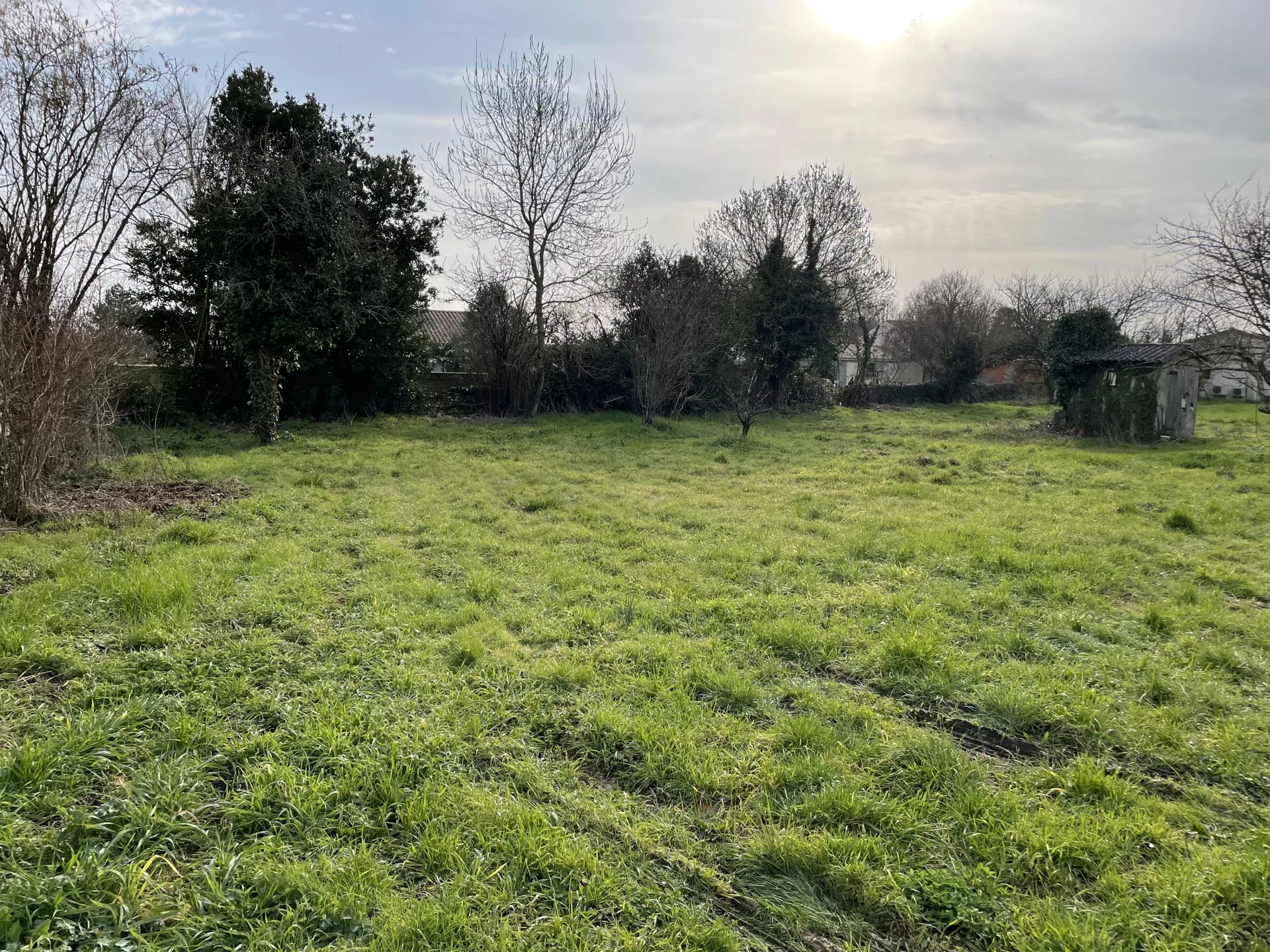 Terrain plat en second plan de 859 m2 borné, avec puit, non viabilisé, réseaux en bord de route, DP déposée.