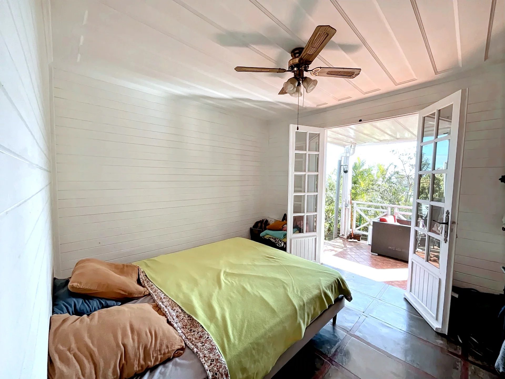 La seconde chambre, aménagée dans un charmant kiosque en bois, séduit par son authenticité : poutres apparentes, ambiance cocooning et charme créole garanti.