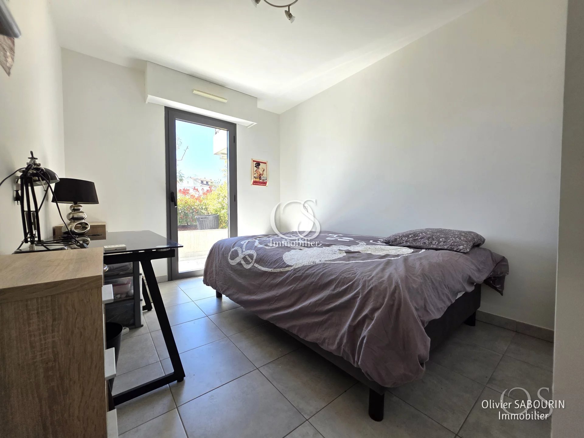 - Une chambre de plus de 10 m² avec placard, climatisation réversible et accès à la terrasse.