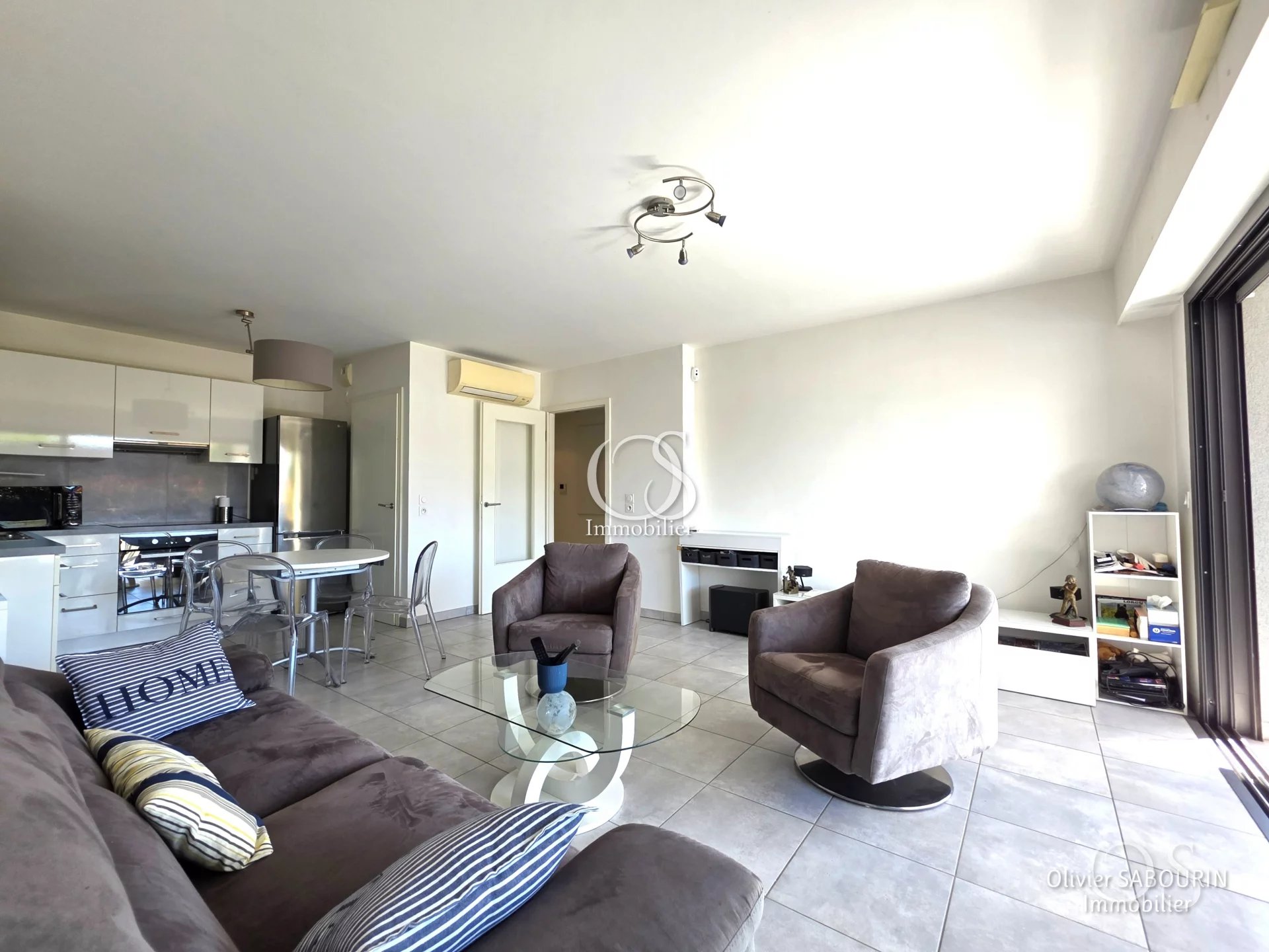 - Un séjour spacieux de 27 m² ouvert sur une cuisine équipée, agrémenté d'une climatisation réversible et d'un accès direct à la terrasse.
