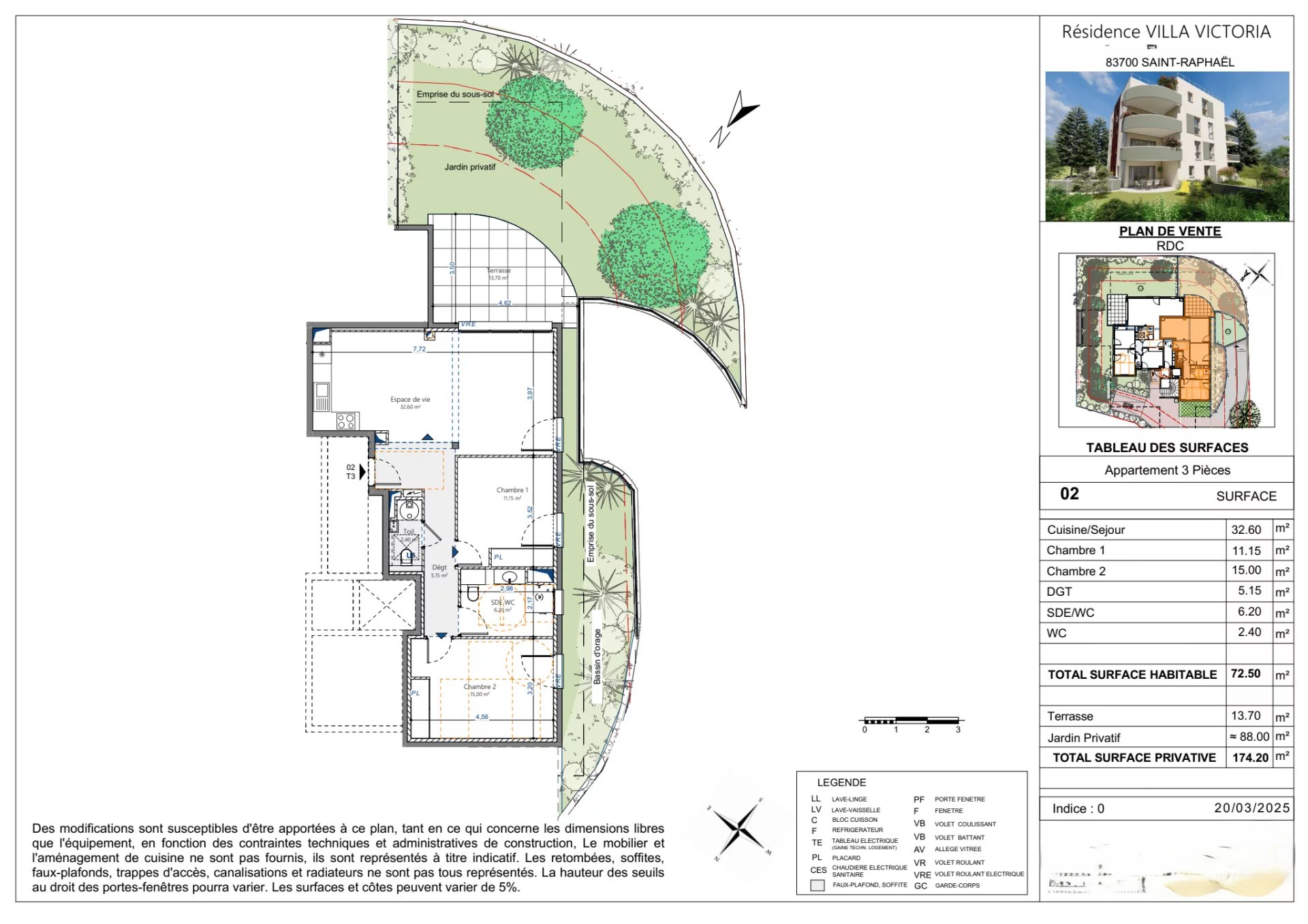 Lot 2 : T3 en Rez de Jardin de 73m2, 14m2 de terrasse et 88m2 de jardin (430 000€)