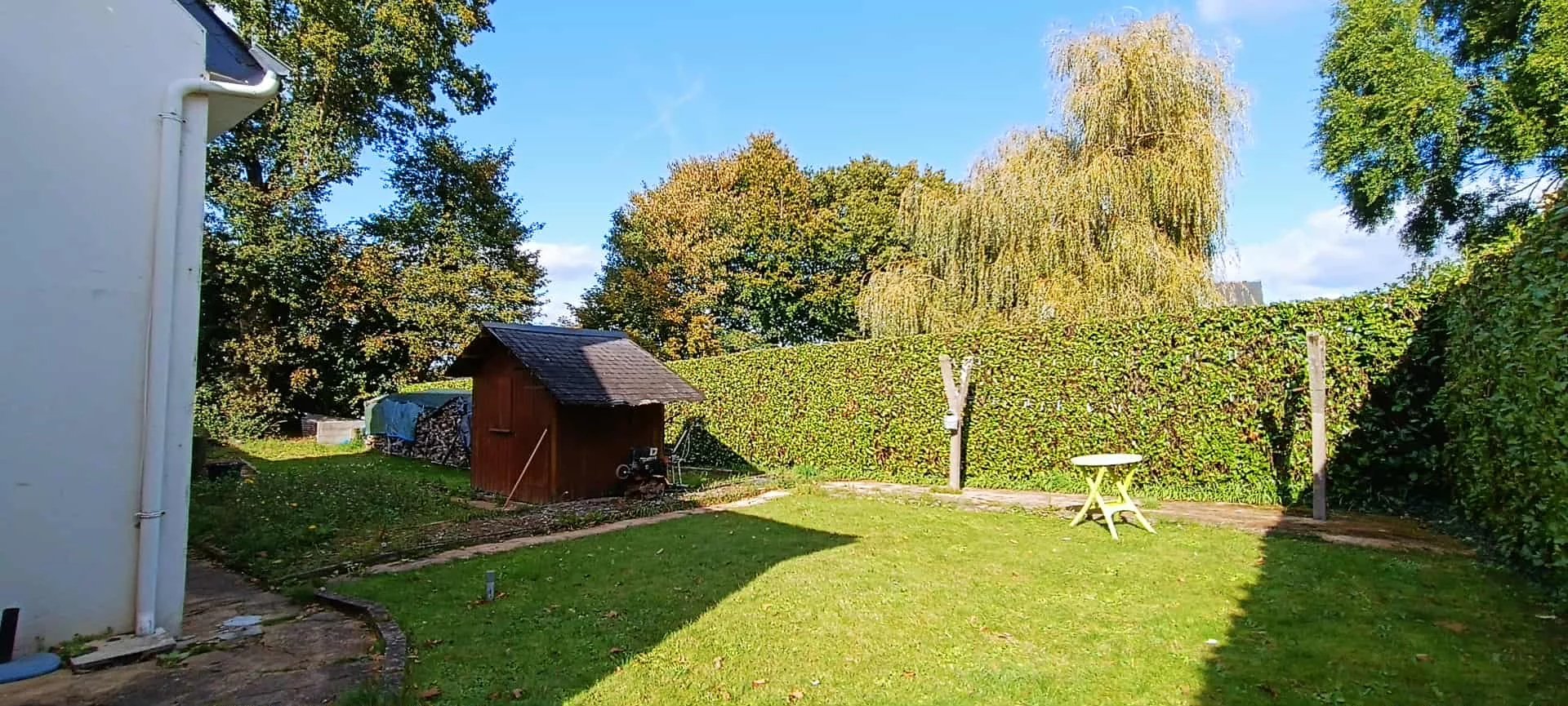 À l'extérieur, le jardin est entièrement clôturé, offrant sécurité et intimité (clôtures et haies, portail avec interphone). Depuis la terrasse, vous aurez une vue dégagée sur la campagne.