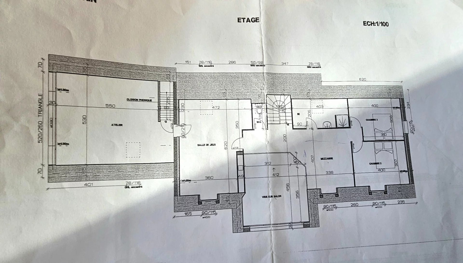 - à l'étage : une vaste mezzanine, une salle de bains avec douche, un bureau ou petite chambre, un WC, 3 chambres. Espace atelier aménageable en studio avec accès indépendant via le double garage.