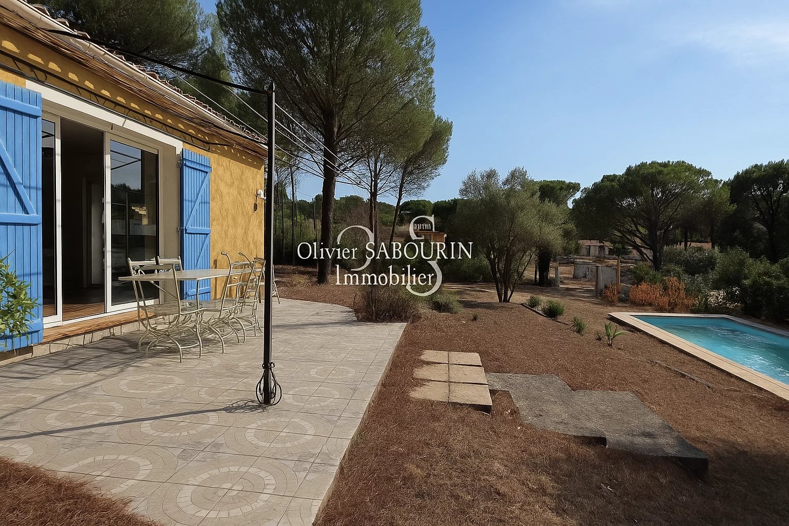 Située au fond d’une impasse, dans un secteur recherché, calme et résidentiel de Vidauban, à seulement 8 minutes du centre-ville et de toutes ses commodités (commerces, services administratifs, écoles) et 10 minutes du péage d'autoroute, cette belle villa de plain-pied de 100 m² est édifiée sur un terrain arboré de 2 500 m².
