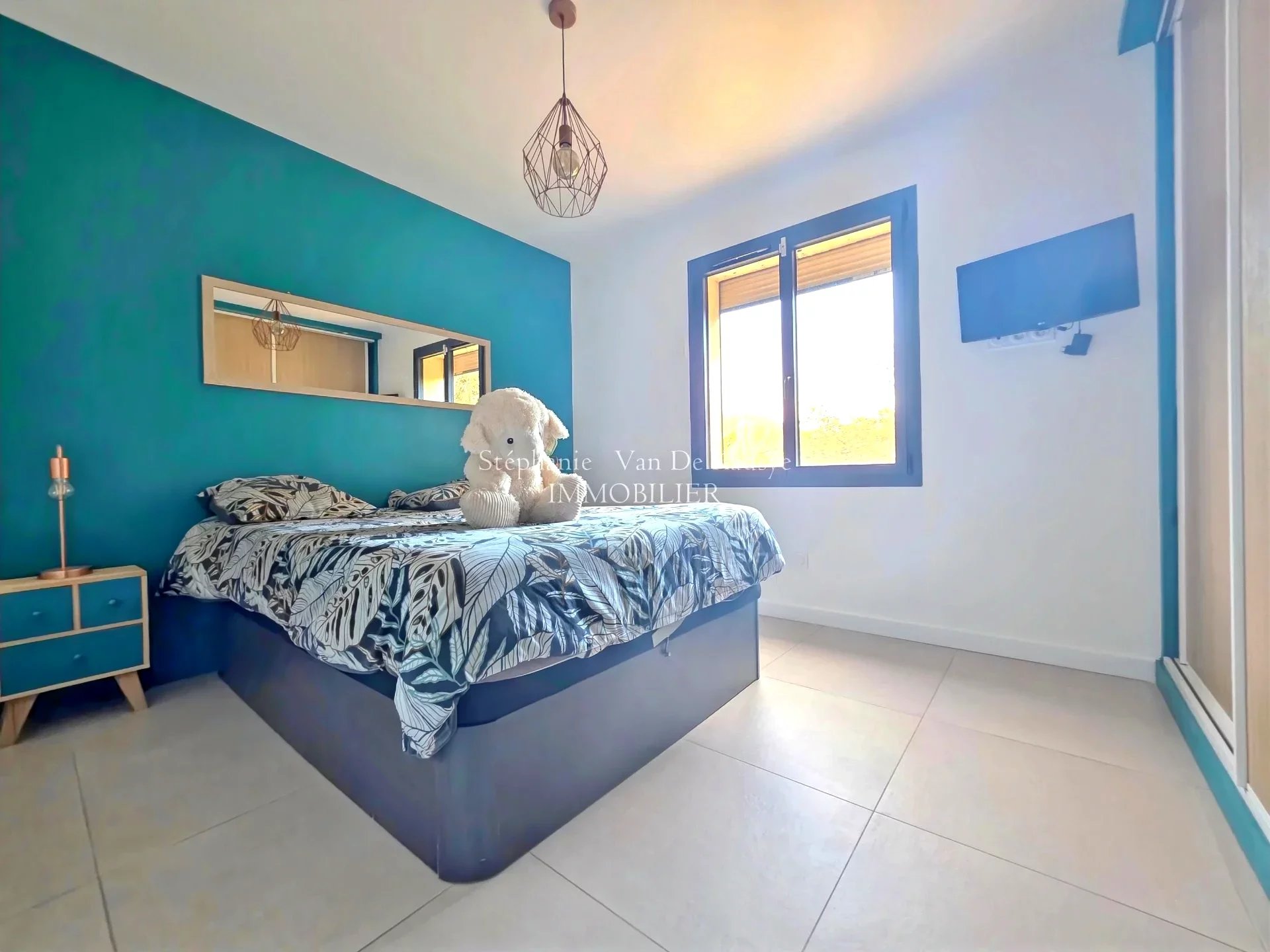 La villa bénéficie de nombreux atouts : double vitrage, volets solaires, climatisation réversible, rangements optimisés.