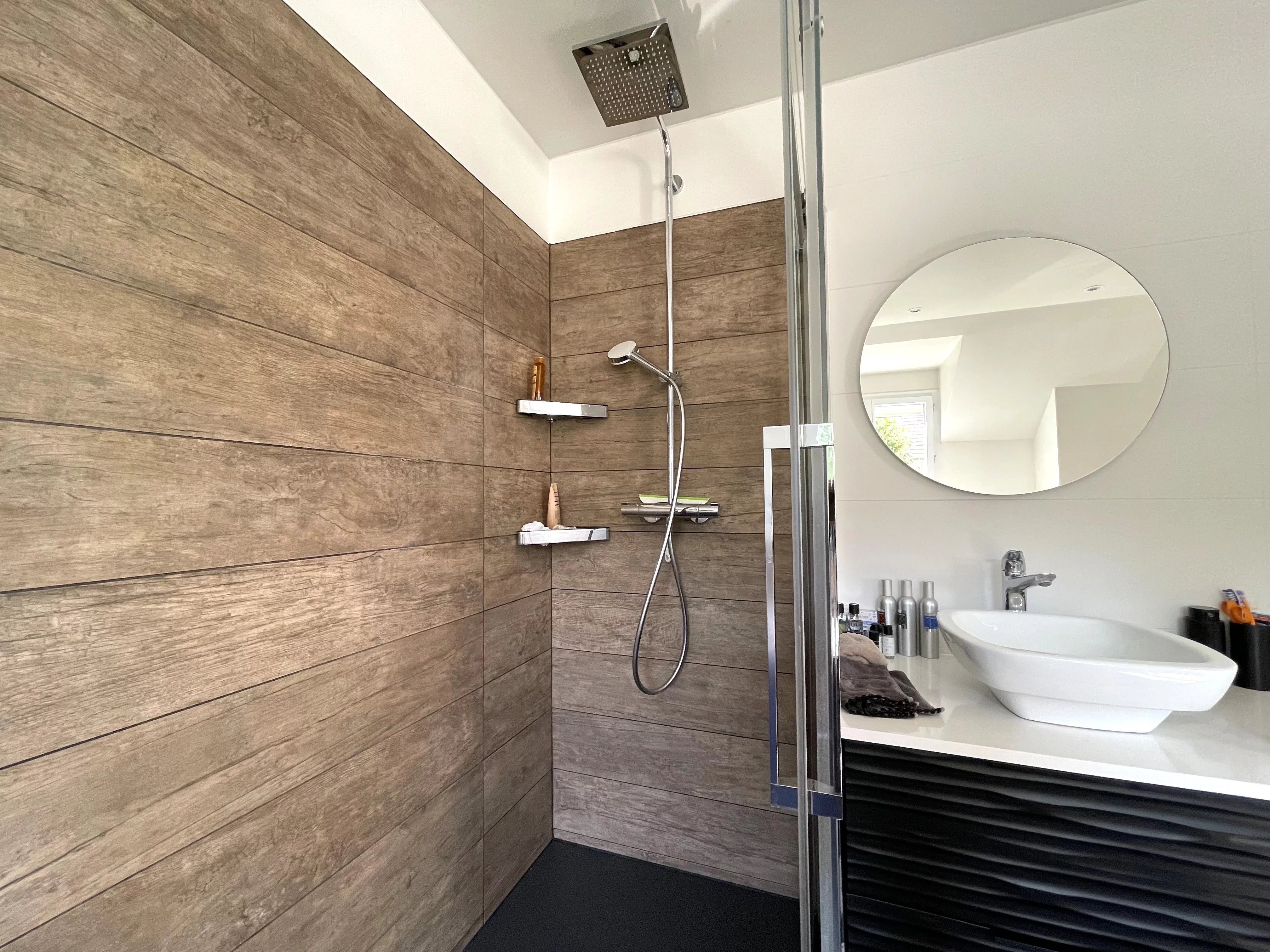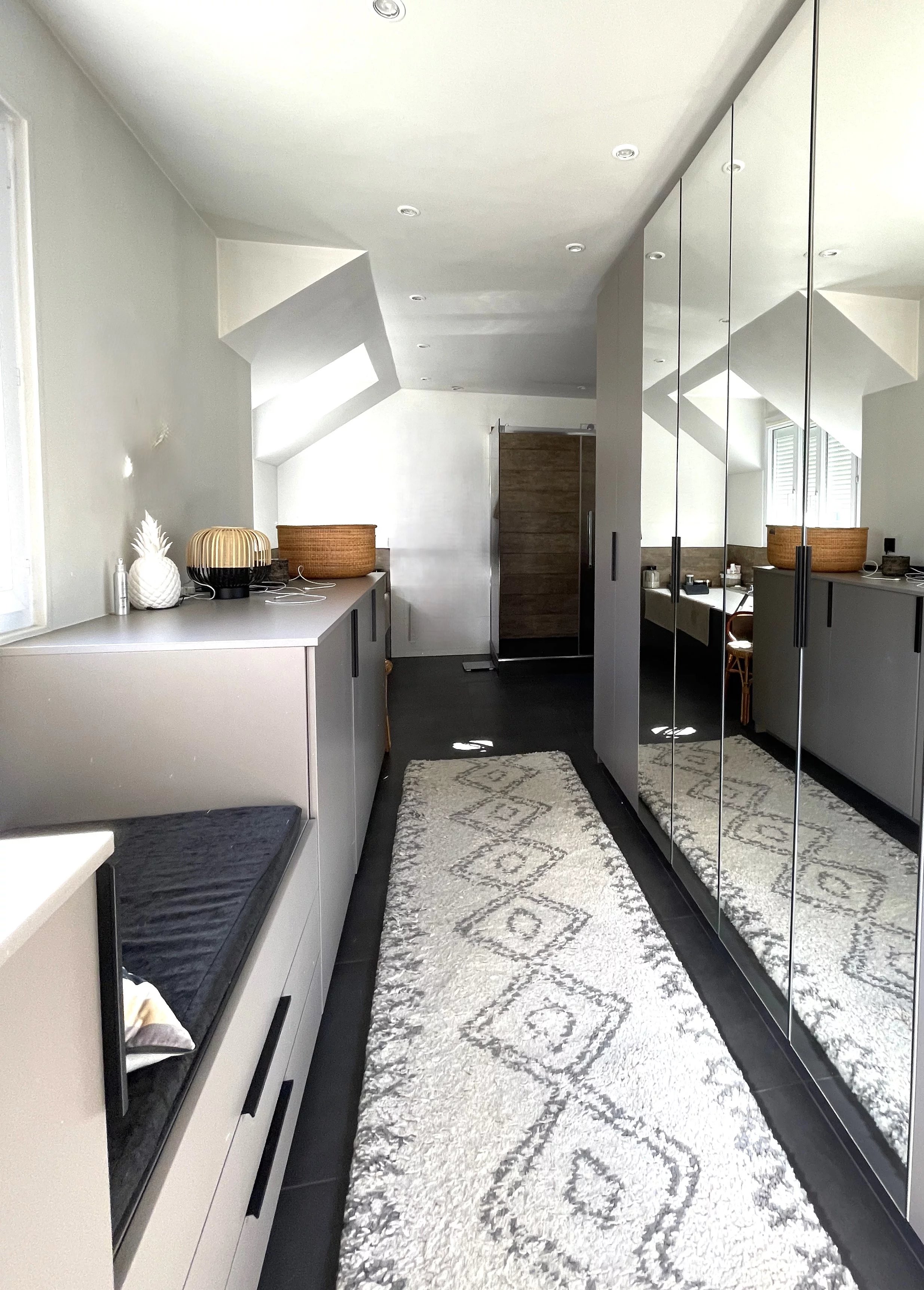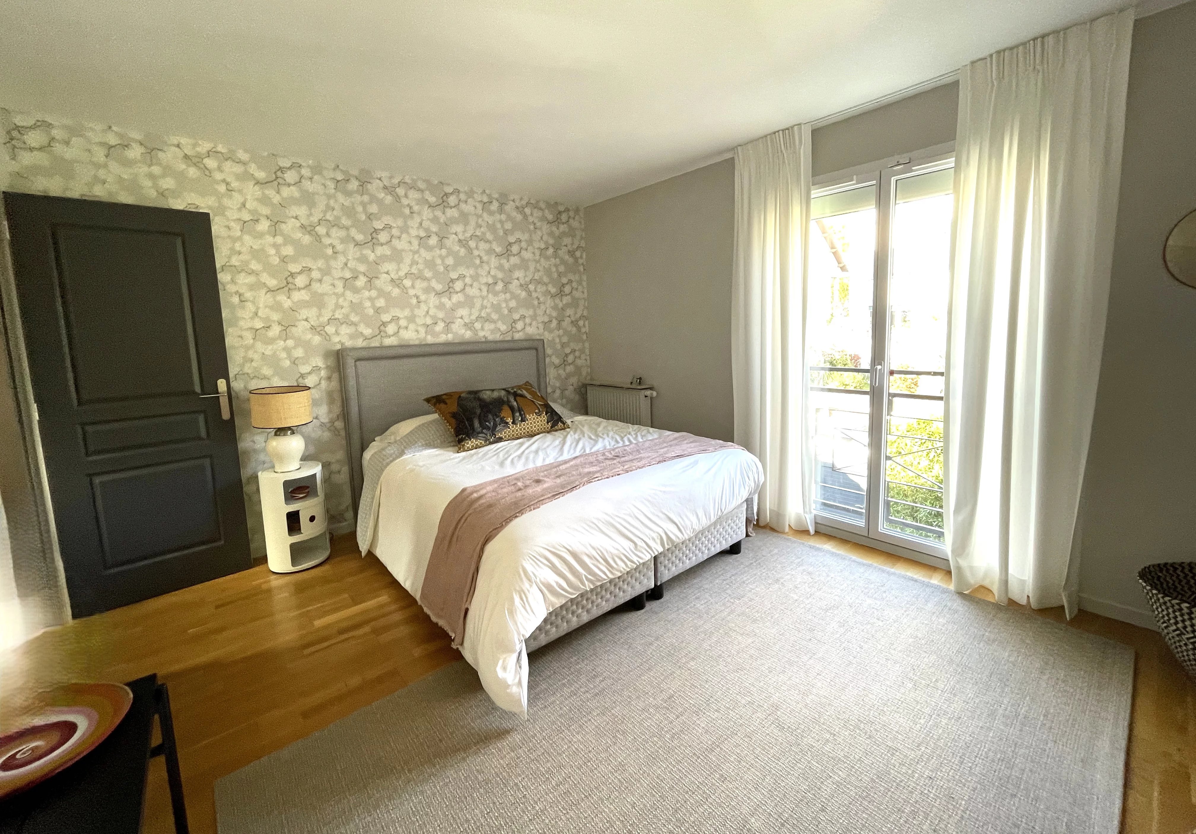 À l’étage, trois belles chambres avec rangements, dont une superbe suite parentale aux prestations particulièrement soignées : grand dressing, baignoire et spacieuse douche à l’italienne. Une seconde salle de bains avec douche est dédiée aux deux autres chambres.