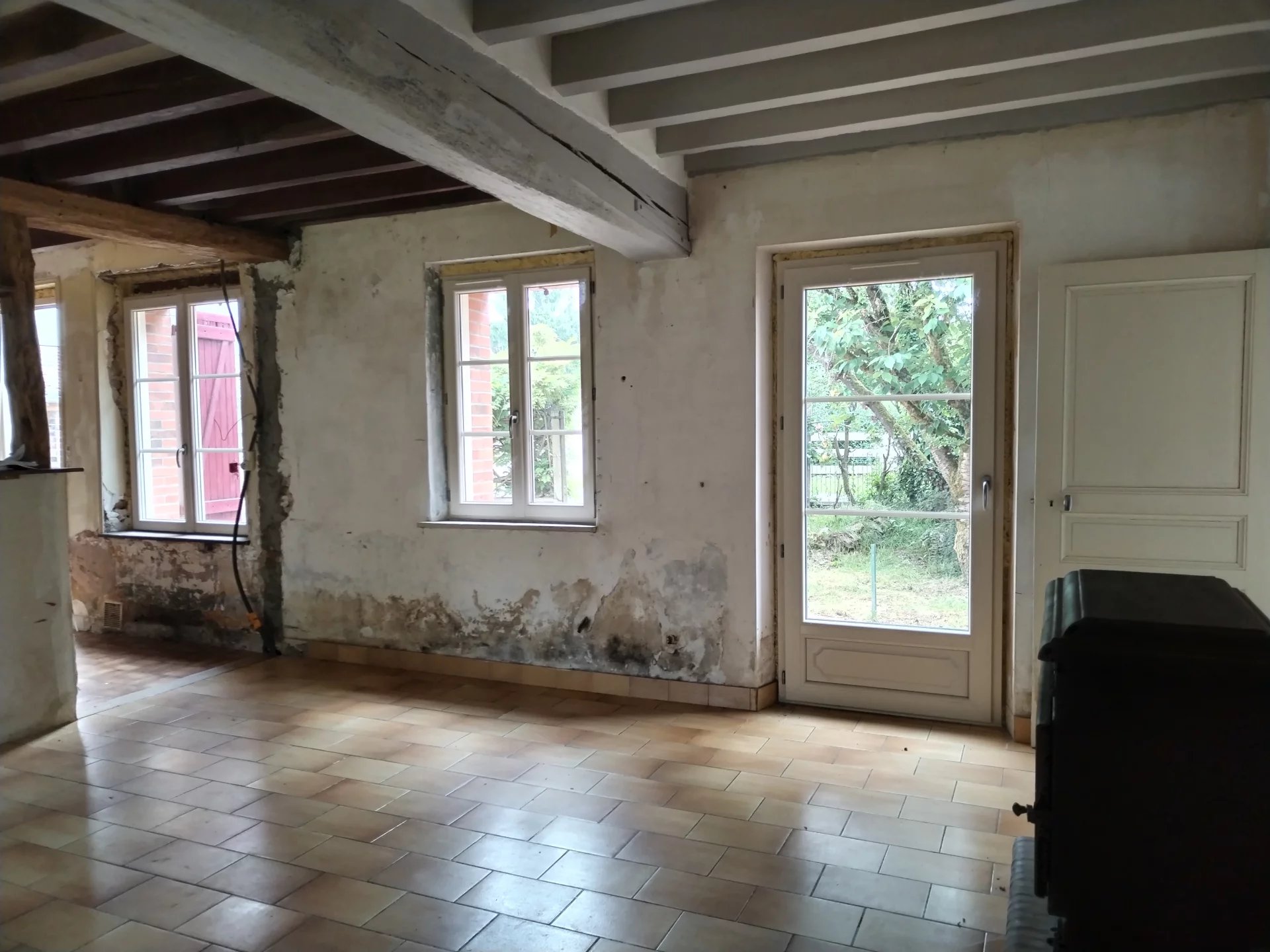 Des travaux de rénovation sont à prévoir, mais les ouvertures ont été remplacées en 2022 par des fenêtres en PVC double vitrage. Le bien est chauffé via une pompe à chaleur et un poêle à bois, avec production d’eau chaude assurée par un ballon thermodynamique.