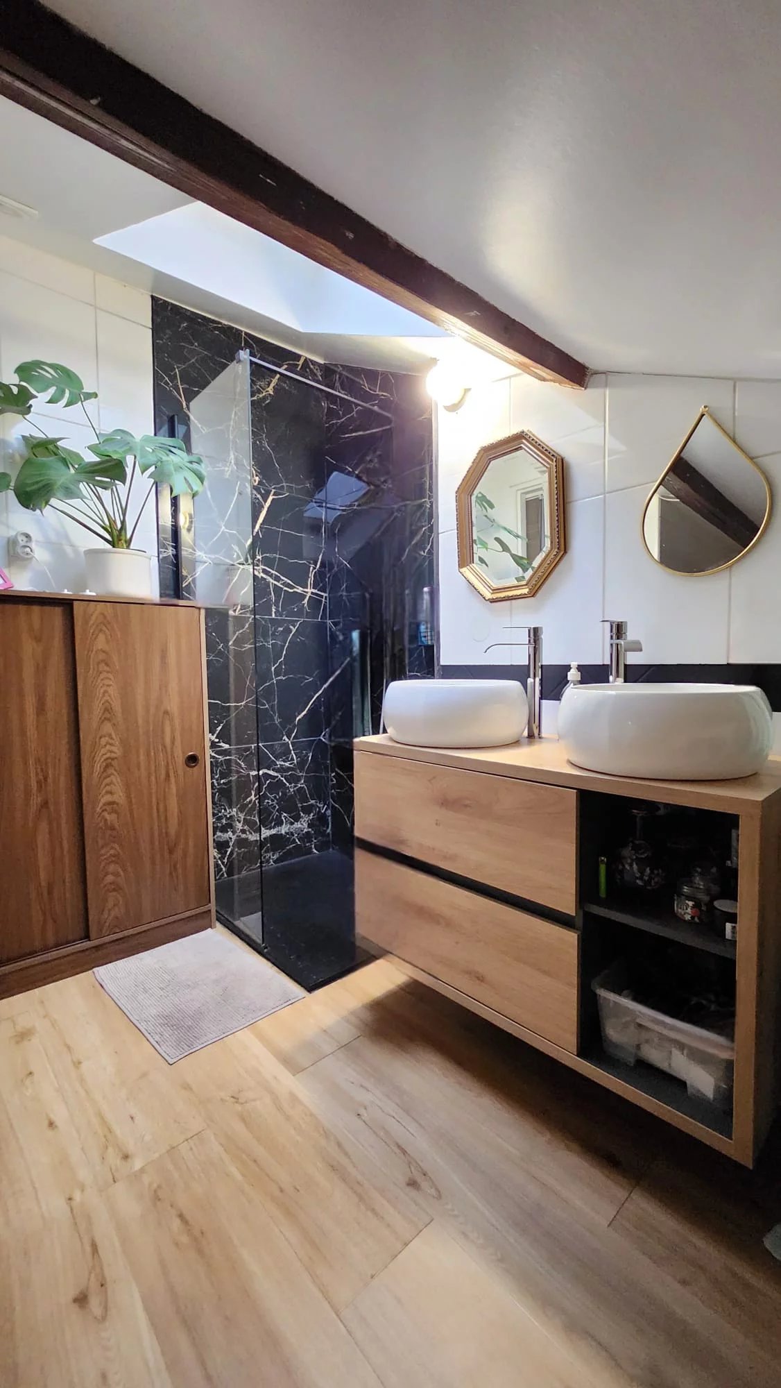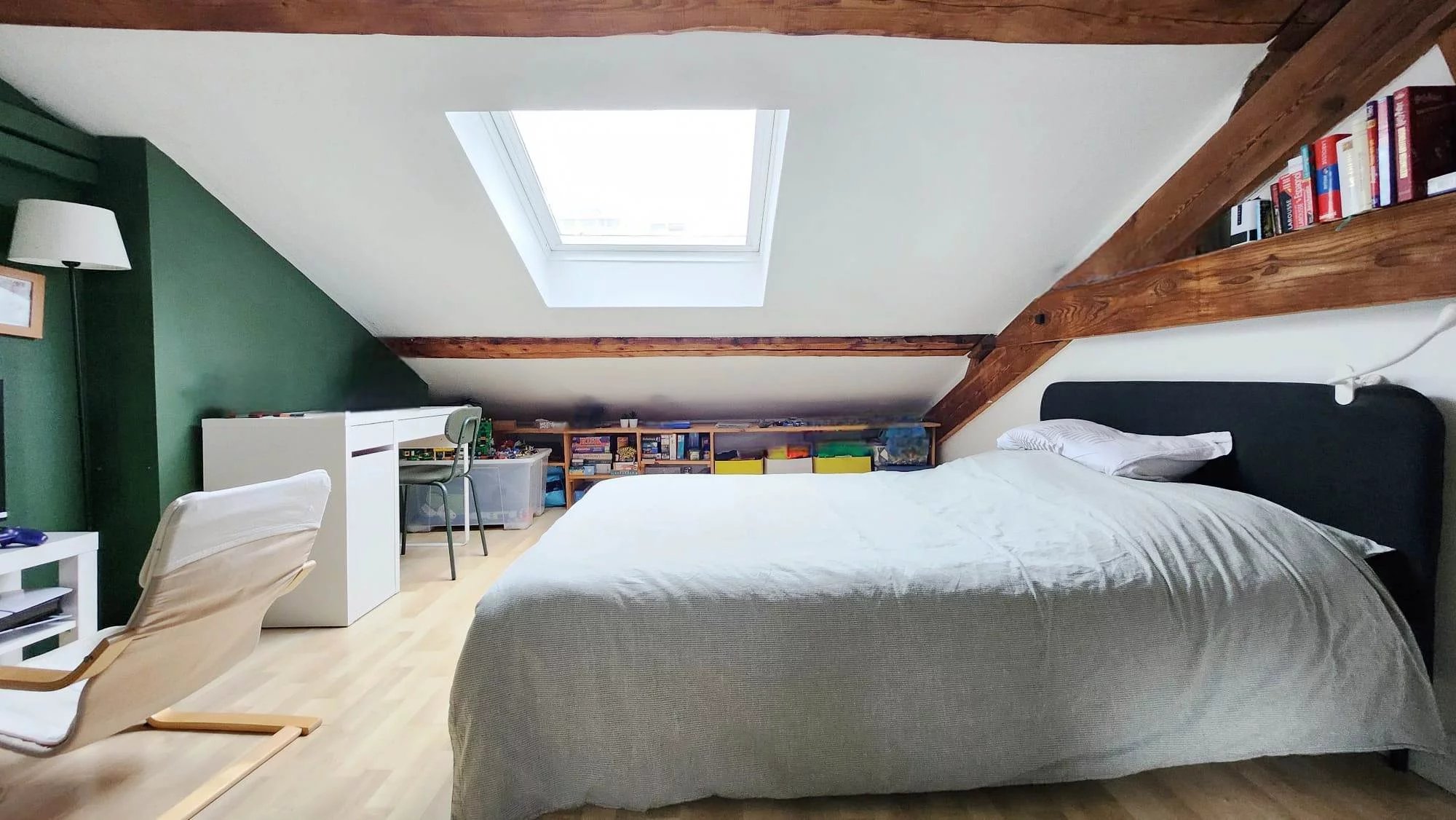 Il se compose de 4 pièces comprenant : un hall d’entrée, une cuisine ouverte sur le séjour, une chambre et un WC. À l’étage, vous trouverez un espace bureau, deux chambres mansardées, ainsi qu’une salle de bains équipée d’une douche, d’une baignoire et d’un WC.